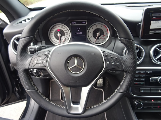 Uitmuntende prestaties, dynamische rijeigenschappen en bakken vol met rijplezier, deze Mercedes-Benz A-klasse levert het allemaal. Een viercilinder motor en een handgeschakelde versnellingsbak zorgen voor de uitstekende prestaties van deze auto. Comfort? Luxe? Stijl? Allemaal meegeleverd in de vorm van het lederen interieur. In de verwarmbare voorstoelen zitten is elke keer een welkom gevoel. De strakke sportstoelen hebben niet alleen de looks, maar bewijzen ook hun functie als u wat meer vraagt in de uitdagende bochten. De gasontladingslampen van de xenonverlichting zorgen voor een krachtige en heldere lichtbundel. Minder brandstofverbruik en minder uitstoot. Het start-stopsysteem zorgt ervoor dat de motor uitschakelt terwijl u stil staat. U wordt in deze auto ook getrakteerd op 18 inch lichtmetalen velgen, warmtewerend glas, in delen neerklapbare achterbank en snelheidsafhankelijke stuurbekrachtiging.
