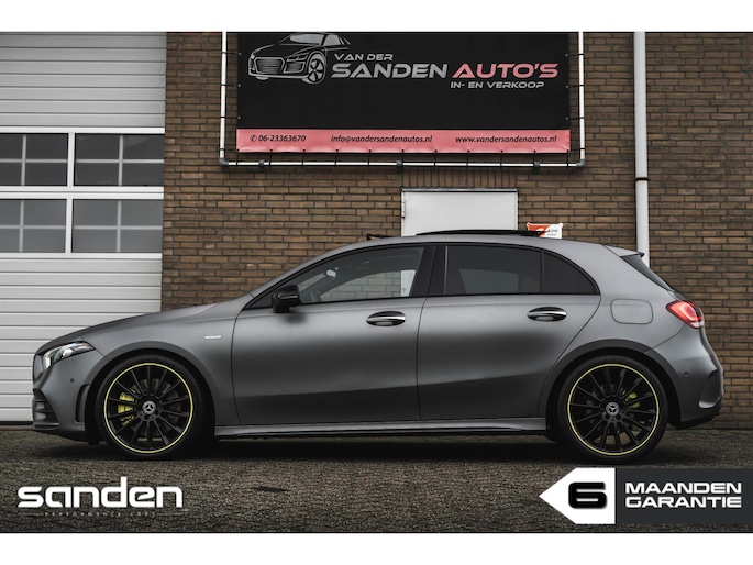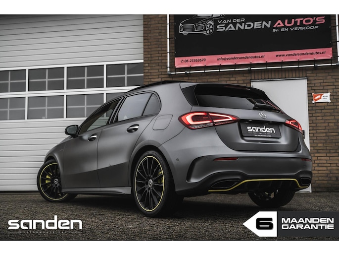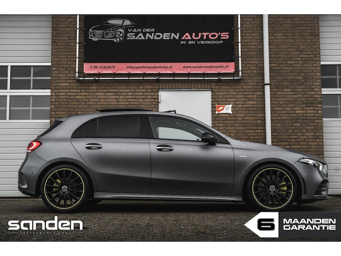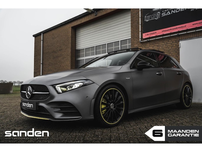 Mercedes-Benz A250 AMG Edition 1 | 67.800 km | Matte lak | Panoramadak | Burmester | Sfeerverlichting | Camera | Gele stiksels | Sportstoelen | Keyless | LED High Performance | 19 inch AMG Edition 1 velgen | Adaptive Cruise Control | Stoelverwarming | Virtual Cockpit | CarPlay