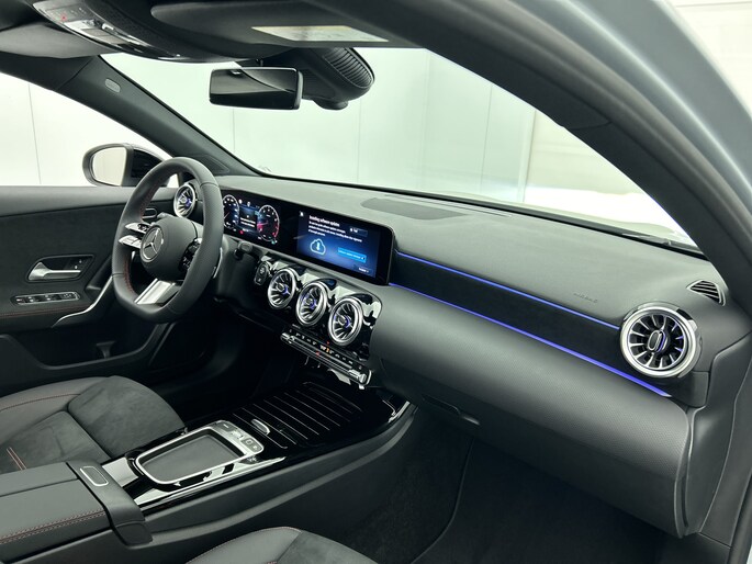 Handig, zo'n hatchback. Aan de achterzijde een extra deur, om makkelijk in en uit te laden. De AMG-styling voegt een aantal uitgesproken sportieve accenten toe. Dit is een splinternieuwe auto, die nu uit voorraad leverbaar is. De aandrijving komt voor rekening van een benzinemotor en een automatische transmissie. 's Winters komen de verwarmbare voorstoelen heerlijk van pas. De sportstoelen geven het interieur van deze A-klasse een super strakke en sportieve uitstraling. Het glazen panoramadak laat jou genieten van een wijds uitzicht en meer lichtinval. De koplampen zijn voorzien van matrix LED-verlichting waarmee je aanzienlijk verder kan kijken in het donker. Het systeem past zelf de lichtstraal aan op het moment tegenliggers verblind kunnen worden. In deze Mercedes-Benz profiteer jij onder andere ook van: 18 inch lichtmetalen velgen, AMG-styling, dynamisch onderstel, in delen neerklapbare achterbank, LED-achterlichten en verstelbare lendensteunen.