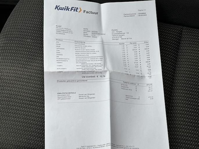 Kilometerstand gecontroleerd