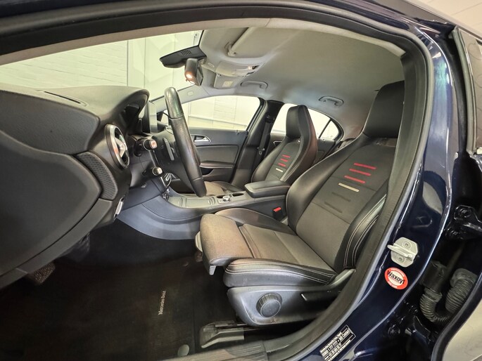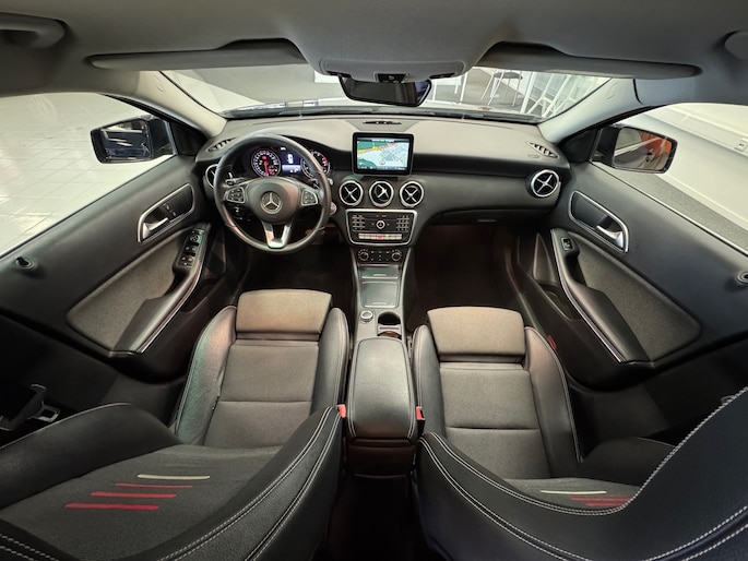 Alle technologie in de Mercedes-Benz A-klasse is er op gericht om uw rit veilig en gemakkelijk te laten verlopen. De aandrijving van deze Mercedes-Benz wordt verzorgd door een viercilinder motor en een automatische transmissie. De sportstoelen houden u en uw bijrijder goed op z'n plek tijdens het accelereren en bij het nemen van scherpe bochten. Tot de voorzieningen van deze auto behoren 16 inch lichtmetalen velgen, LED koplampen, halflederen bekleding, warmtewerend glas, in delen neerklapbare achterbank en LED-achterlichten.