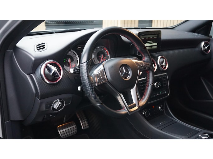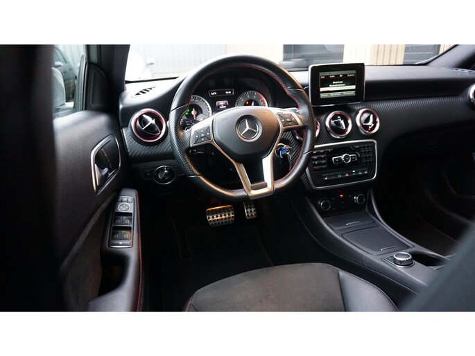 In nette staat verkerende Mercedes-Benz A-Klasse 180 90kw/122pk Automaat 5-Deurs voorzien van 2x AMG-Line Pack (Interieur & Exterieur) Afkomstig van de 3e particuliere eigenaar in Nederland. Netjes onderhouden. Met 130869km. Af-fabriek gespoten in de kleur Polar Silver Metallic. Destijds door een 3rde partij geïmporteerd op 18-02-2019. Verder is de A-klasse voorzien van o.a. Half Lederen/Alcantara sportstoelen.18inch LM velgen.Bi-xenon koplampen.LED dagrijverlichting.zwarte Hemel.Airco.Cruise Control.Isofix.Multi-Stuurwiel.Navigatiesysteem.Bluetooth.Multi-Media.Getinte ramen achter.F1-stuurschakeling.2xsleutel aanw.Onderhoudshistorie aanw.
