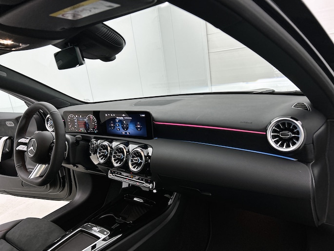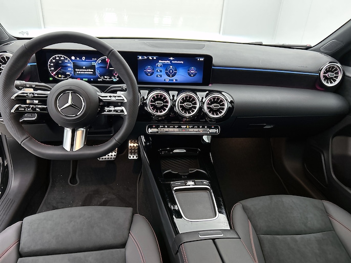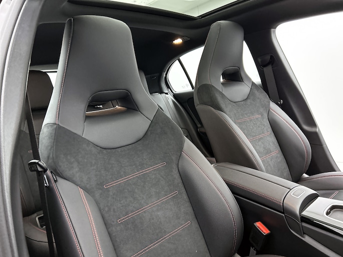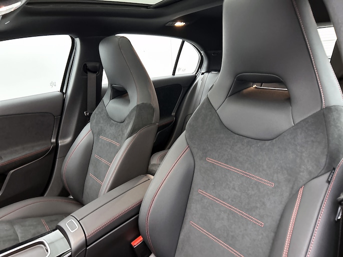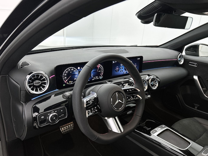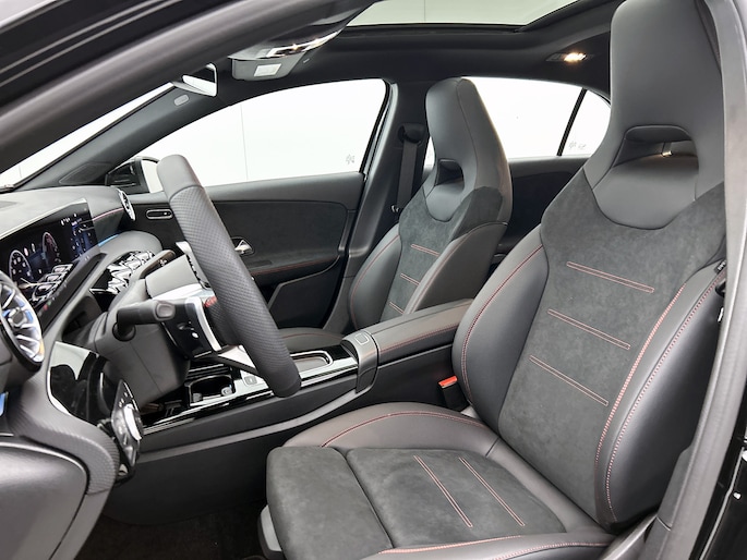 De vooruitstrevende hybride aandrijflijn van deze auto geeft vandaag al antwoord op de belangrijke vragen van morgen. De verschillende elementen van de AMG-styling accentueren de dynamische lijnvoering van deze A-klasse. Het is een nieuwe auto, hij is nu uit voorraad leverbaar. Zuiniger, schoner en stiller: dat zijn de voordelen van de hybride motor in deze Mercedes-Benz A-klasse. De slimme combi van brandstof- en elektromotor is goed voor het milieu én de portemonnee! In de verwarmbare voorstoelen zitten is elke keer een welkom gevoel. Voor het pittige uiterlijk én goed gesteund zitten zorgen de sportstoelen. Het glazen panoramadak laat meer licht binnen in het interieur en zorgt voor een magnifiek uitzicht naar buiten. Perfect zicht bij nacht en slecht weer? Dat leveren de koplampen met matrix LED-verlichting. Ook 18 inch lichtmetalen velgen, AMG-styling, dynamisch onderstel, in delen neerklapbare achterbank, LED-achterlichten en verstelbare lendensteunen zijn aan boord.