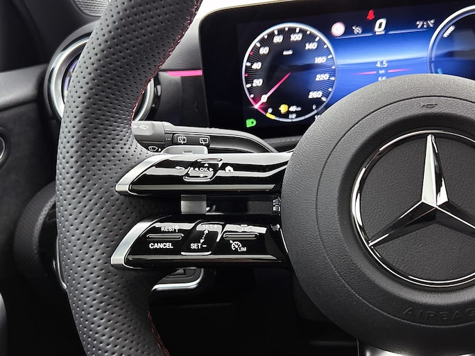 Onder alle omstandigheden perfect zicht op wat zich achter de auto afspeelt: de parkeerhulp met achteruitrijcamera zorgt ervoor! Deze Mercedes-Benz A-klasse is voorzien van remote services. Via je smartphone bedien je diverse functies ook op afstand en krijgt je informatie over de status van je auto. Wegwijs in elke wijk, stad of reisbestemming? Daarvoor zorgt het navigatiesysteem met harde schijf! Het comfort wordt verhoogd door de aanwezige electronic climate control. Het stuur van deze auto heeft uiteenlopende functies. Ook om het geluid te regelen. De audiobediening op het stuur draagt daarom actief bij aan een veilige rit. Met schakelpaddles aan het stuur, draadloos opladen, DAB ontvangst, regensensor, cruise control met snelheidsbegrenzer en automatisch dimmende binnenspiegel is deze auto helemaal compleet.