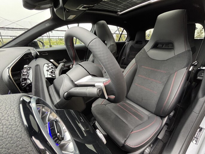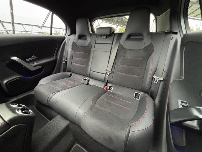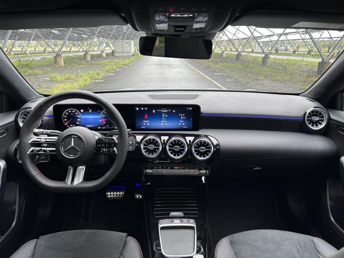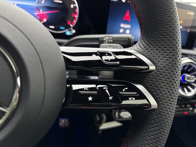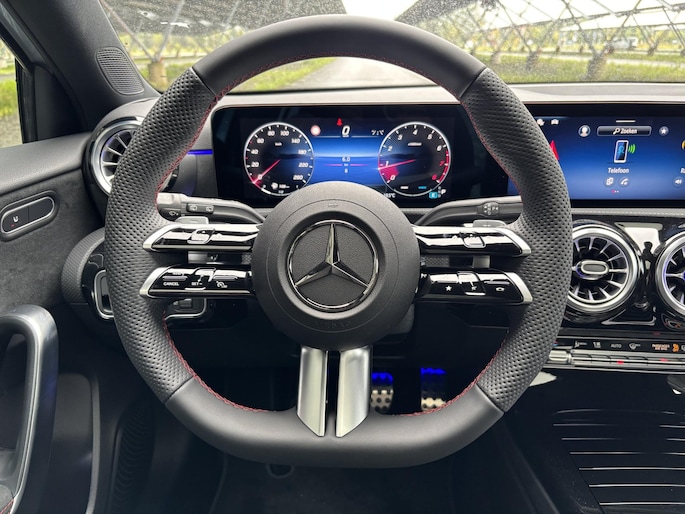 De Mercedes-Benz A-Klasse 180 Business Solution AMG is een dynamische hatchback die sportiviteit en comfort moeiteloos combineert. Met de AMG Line krijgt de auto een krachtige uitstraling, terwijl het panoramadak zorgt voor een ruimtelijk en licht interieur. Binnenin geniet u van hoogwaardige materialen en moderne technologie, waarmee elke rit comfortabel en plezierig wordt. De A-Klasse staat bekend om zijn wendbaarheid en premium uitstraling, en vormt zo de perfecte keuze voor wie stijl en praktisch gemak wil samenbrengen in een compacte hatchback