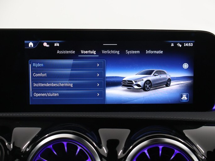 De Mercedes-Benz A 180 Business Solution AMG combineert sportiviteit met luxe en moderne technologie. Uitgerust met het Premium pakket en o.a. voorzien van een panoramaschuifdak, Head-Up Display, 360° camera en dodehoekdetectie, biedt deze A-Klasse maximale veiligheid en comfort. Daarnaast uitgerust met warmtewerend, donkergetint glas voor de achterruit en zijruiten, Nightpakket en 19" multispaaks AMG-velgen, heeft deze A-Klasse een dynamische uitstraling die luxe en sportiviteit perfect samenbrengt