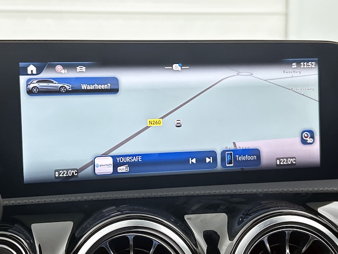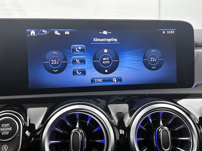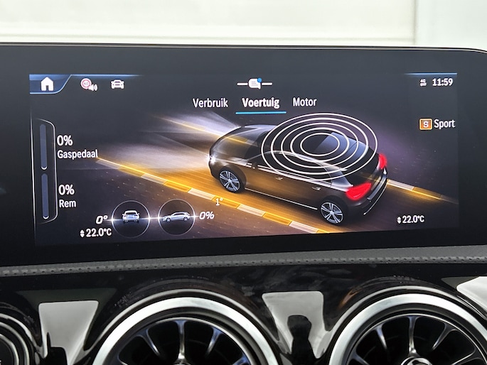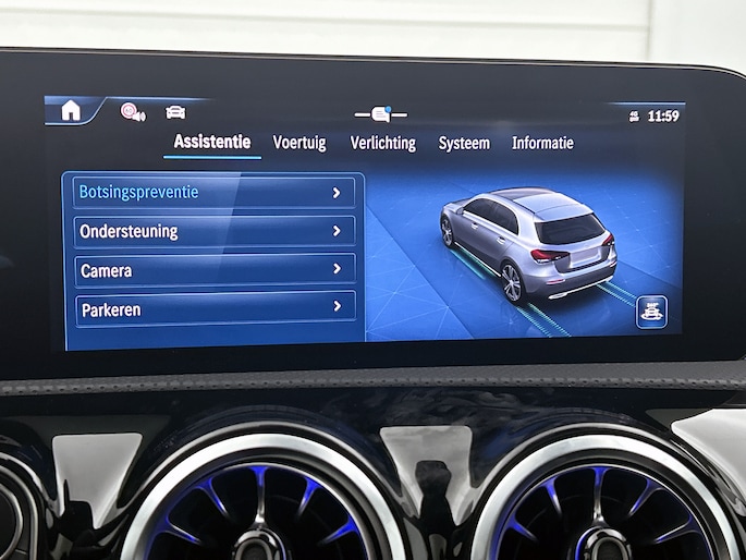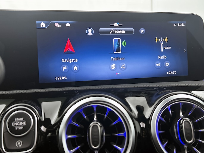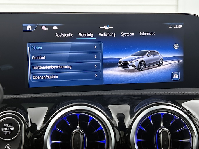 Elk van de vier camera's op deze auto draagt bij aan het creëren van een onbelemmerd uitzicht van 360 graden rondom de auto. Waar je zelf ook bent, je staat altijd in contact met de auto via de app op uw smartphone. Zo controleer je uiteenlopende functies, ook op afstand. Het infotainmentaanbod is zeer uitgebreid. Ontspannen reizen doe je met behulp van het navigatiesysteem met harde schijf terwijl je muziek afspeelt via het audio-installatiesysteem met DAB-radio en smartphone connectiviteit. Zoals van een eigentijdse auto verwacht mag worden, is deze Mercedes-Benz A-klasse voorzien van een draadloze oplaadmogelijkheid voor telefoons. De auto is ook uitgevoerd met electronic climate control. En deze auto heeft ook schakelpaddles aan het stuur, regensensor, cruise control met snelheidsbegrenzer, keyless entry, automatisch dimmende binnenspiegel en centrale deurvergrendeling met afstandsbediening als standaard uitrusting.