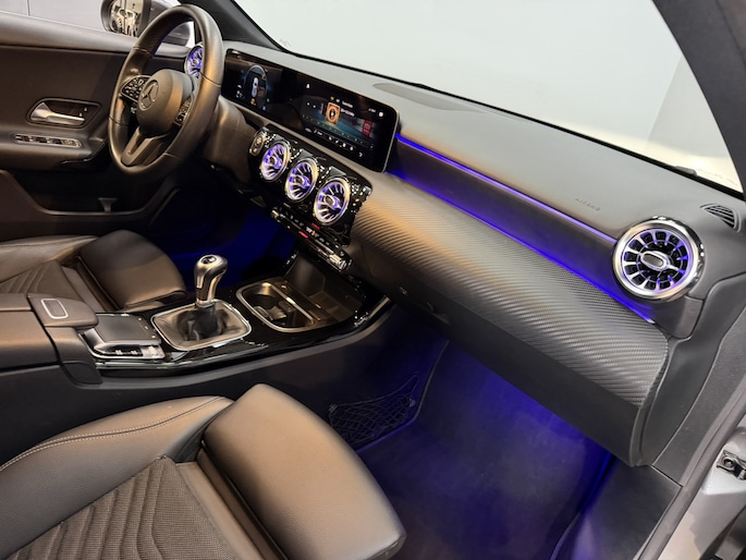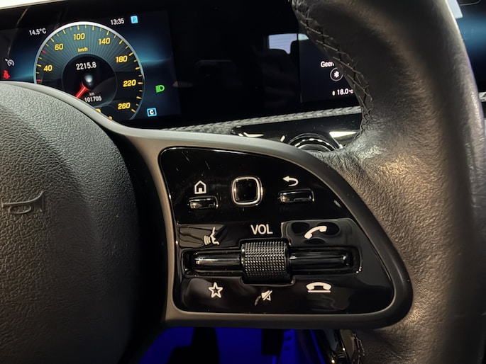 Het eigentijdse interieur wordt natuurlijk helemaal volmaakt met het digitale dashboard. De achteruitrijcamera maakt inparkeren gemakkelijker dan ooit. Deze Mercedes-Benz A-klasse is 'connected'. Belangrijke functies worden permanent gemeten en zijn uit te lezen via een speciale app, ook op afstand. U kunt het audiosysteem en het navigatiesysteem met harde schijf bedienen met de knoppen op het stuur of zelfs met uw stem. Met automatische airconditioning hoeft u alleen de gewenste temperatuur in te stellen. Het systeem doet de rest. Wat u ook in deze auto kunt vinden zijn WIFI-hotspot, regensensor, cruise control en automatisch dimmende buitenspiegels.