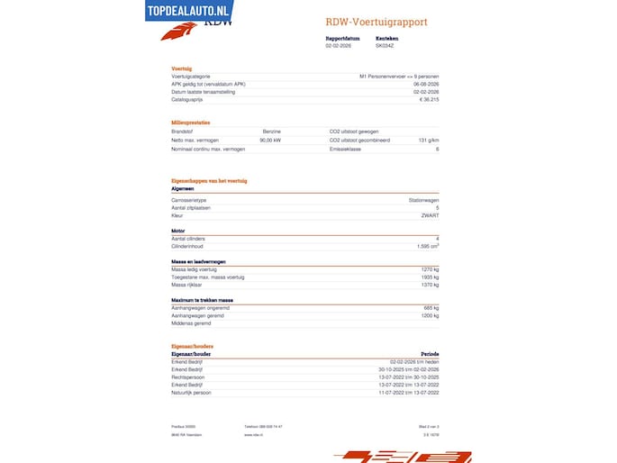 | Wegenbelasting/3mnd | € 199 - € 217 |