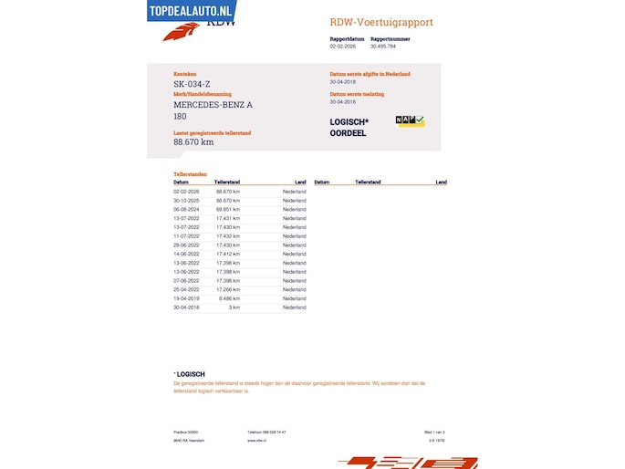 Kilometerstand gecontroleerd