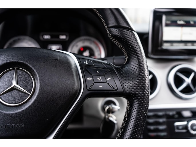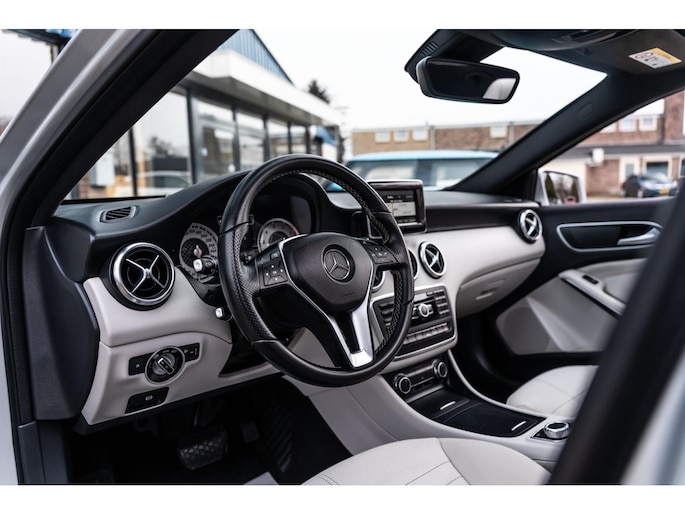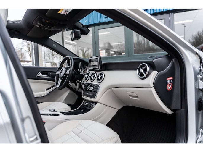 Deze A-Klasse heeft een dynamische uitstraling en een hoogwaardige afwerking. Dankzij onder andere het AMG-styling pakket, aluminium interieurafwerking en lichtmetalen velgen krijgt de auto een sportieve en premium look.