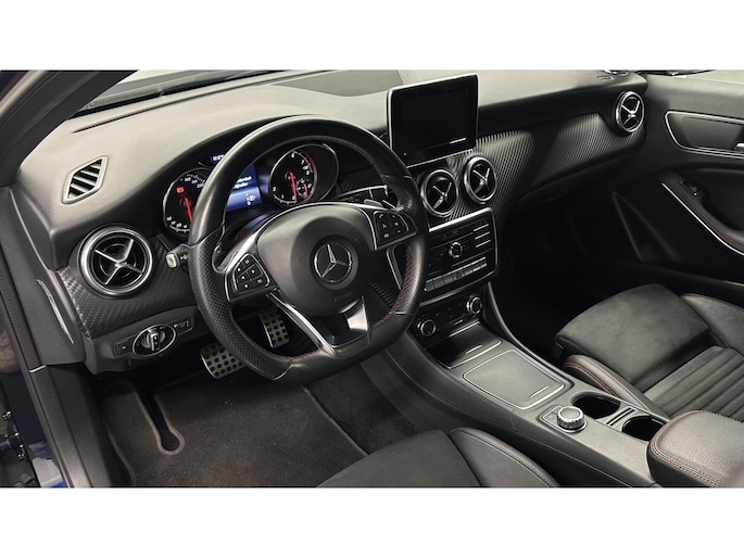 De vooruitstrevende techniek van deze Mercedes A-klasse vormt een harmonieuze eenheid met de stijlvolle vormgeving. Het comfort en de veiligheid staan bovendien op hoog niveau, zoals dat hoort bij een auto van een gerenommeerd Duits merk. Mag het een beetje exclusief en sportief? Mooi, want deze is uitgevoerd met AMG-styling. Hij heeft een benzinemotor en een automatische transmissie. In het interieur domineren de sportstoelen, die er niet alleen stijlvol uitzien, maar die u ook optimaal ondersteunen tijdens de rit. Bij de uitrusting van deze auto horen onder meer 18 inch lichtmetalen velgen, AMG-styling, sportonderstel, warmtewerend glas, zwarte hemelbekleding en in delen neerklapbare achterbank.