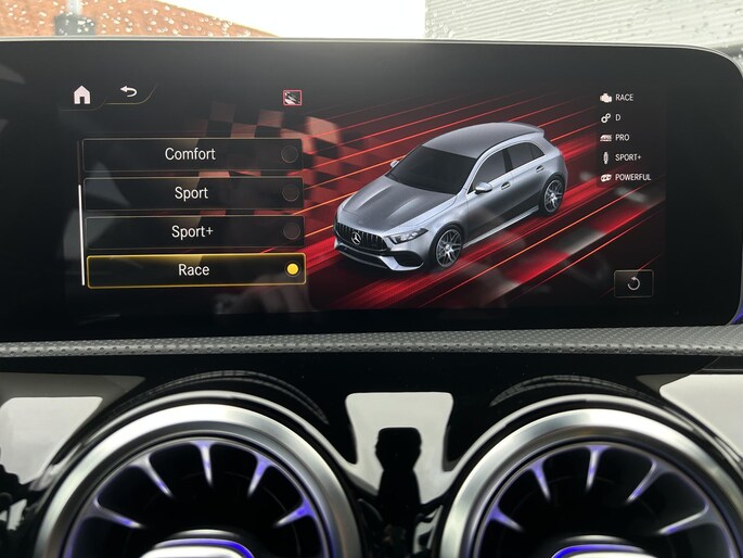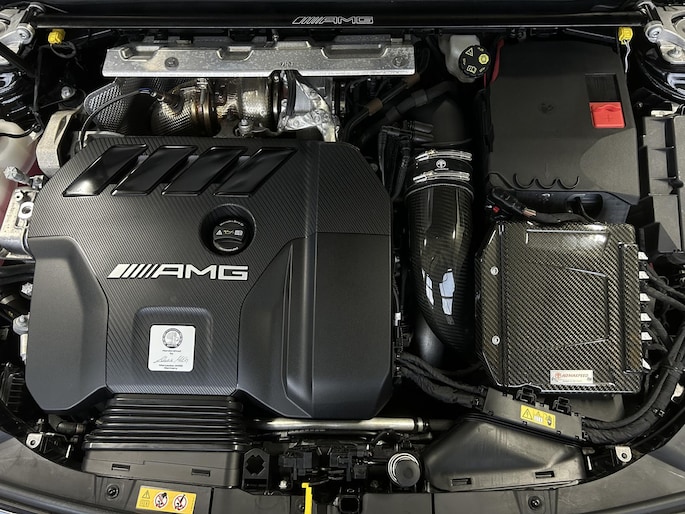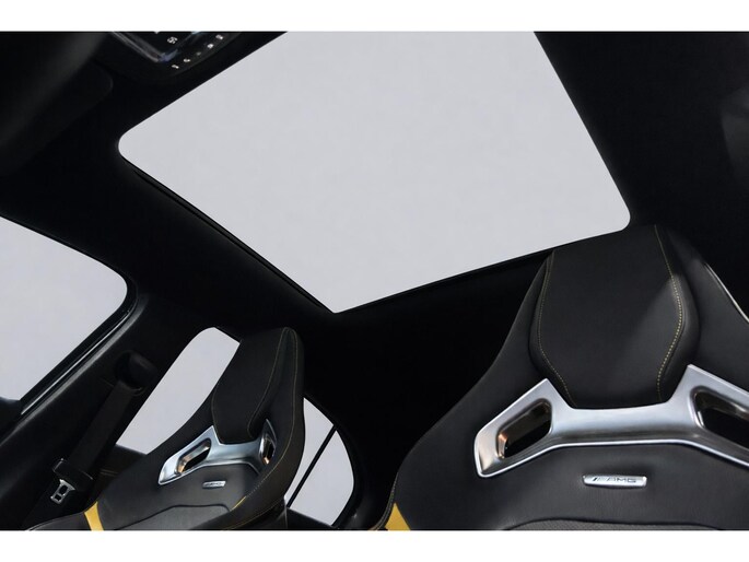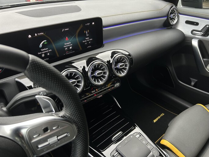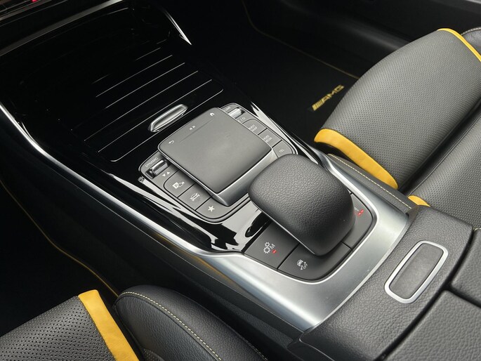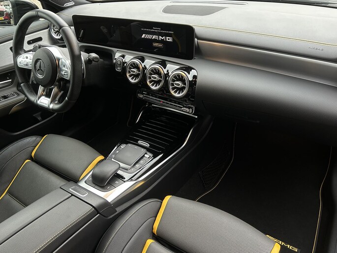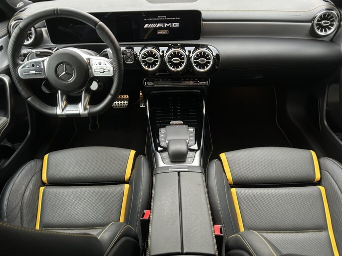 AMG 45 S 4MATIC+ Premium Plus Yellow Ed. /AMG Aero Package/Armaspeed carbon intake/Panoramadak/Elektr. schaalstoelen +mem/Camera achter/Adapt. onderstel/ Adapt.cruise/Uitlaat klepsyst./Burmester Sound/Custom Software ER Performance (MET GARANTIE*)