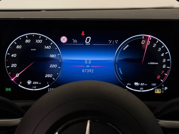 De geavanceerde technologie in deze Mercedes-Benz is in staat om onderweg het verkeer om u heen te monitoren en er op te reageren. Zo hebt u als het ware een automatische co-piloot aan boord. Uiteenlopende functies maakt de head-up display zichtbaar in de voorruit. Wat deze auto ook kan, is lezen. Hij 'leest' voor u de verkeersborden tijdens de rit en attendeert u erop door ze op het dashboard te projecteren. Ongemerkt buiten de rijstrook raken? Nee hoor, het Lane-keeping systeem waarschuwt en corrigeert. In deze Mercedes-Benz vinden we verder een dodehoekdetectie, accident avoidance system, forward collision warning system, vermoeidheidsherkenning en bandenspanningcontrolesysteem.