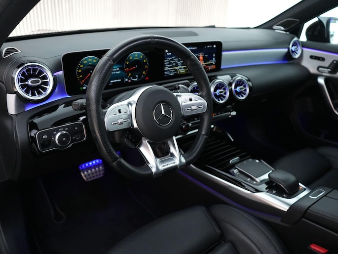 De 2.0 liter AMG-motor is gekoppeld aan een razendsnelle 8-traps transmissie met dubbele koppeling. Het exterieur straalt pure sportiviteit uit met het AMG Nightpakket, verbrede wielkasten en 19” AMG dubbelspaaks velgen. Binnenin word je verwelkomd door AMG Performance-stoelen, sfeerverlichting en het grote MBUX multimediasysteem met Augmented Reality navigatie.