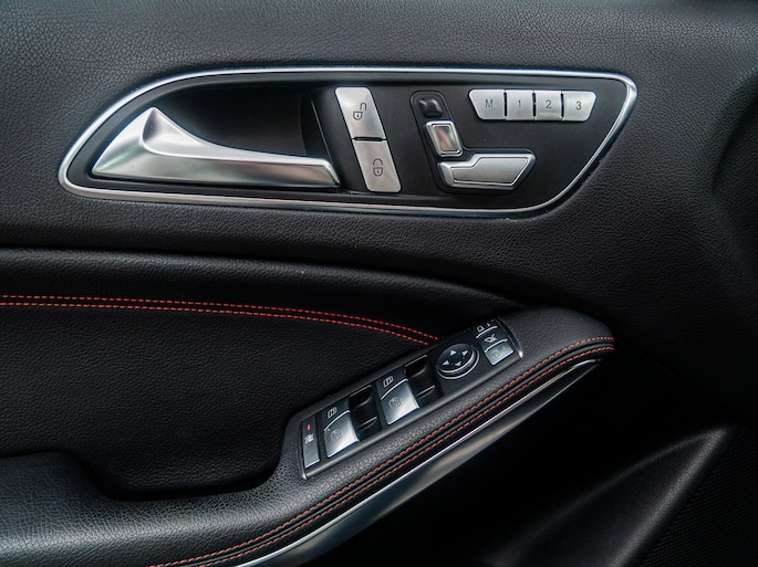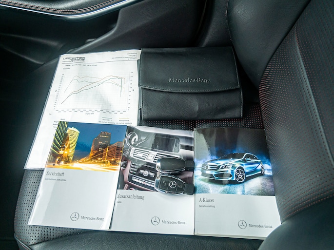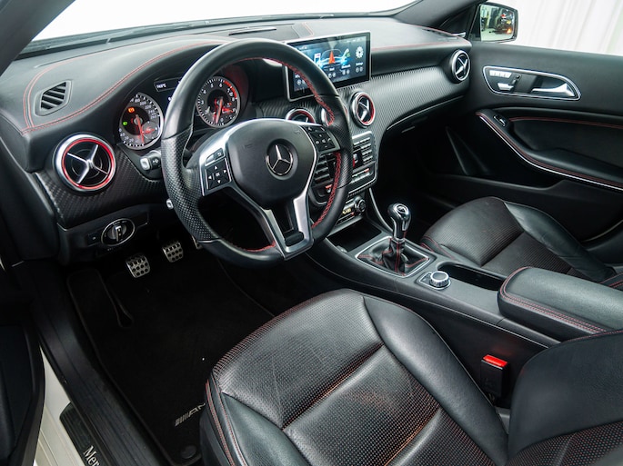 De A-klasse is rijk uitgerust met tal van opties zoals onder andere: 18" Inch AMG velgen, 6-versnellingen, Achteruitrijcamera, AMG pakket, Android Auto, Bi-Xenon verlichting, Bluetooth, Climate control, Cruise control, Dodehoekwaarschuwing, Elektrische ramen voor + achter, Elektrisch inklapbare buitenspiegels, Elektrisch verstelbare memory-seats, Harman Kardon geluidsinstallatie, Hill Hold functie, Leder interieur, Navigatie, Parkeersensoren voor + achter, Start-stop systeem, Stoelverwarming, Stuurwiel-bediening, Zwarte hemel etc..