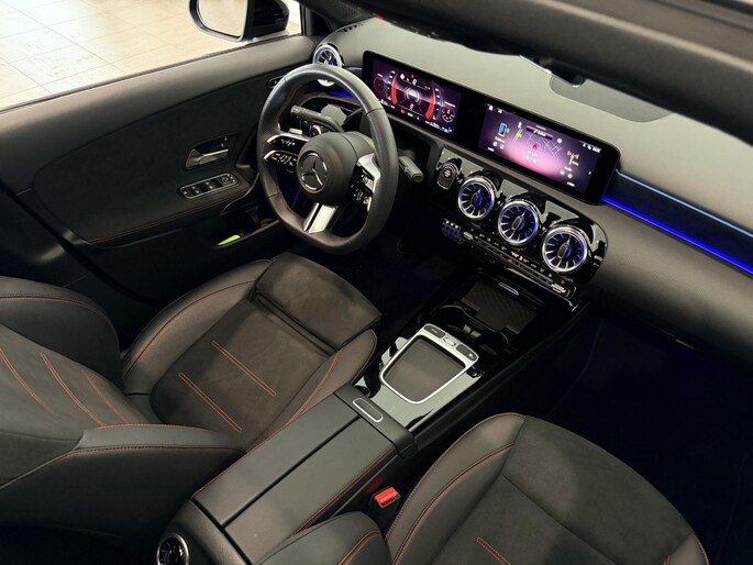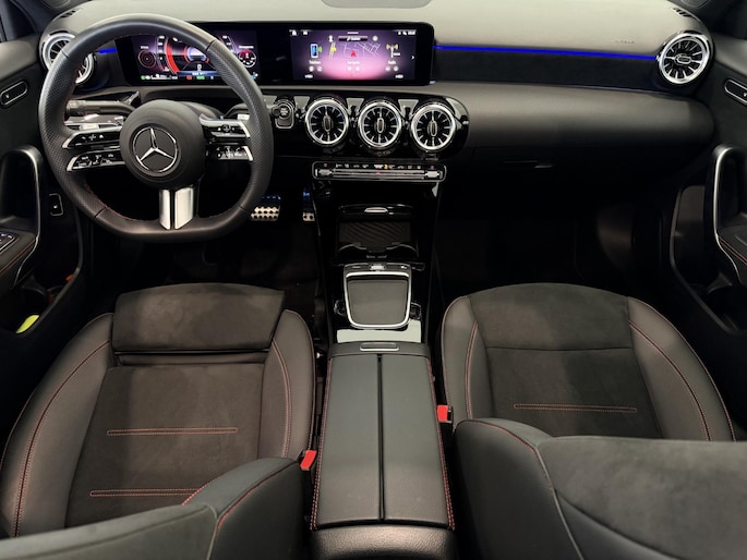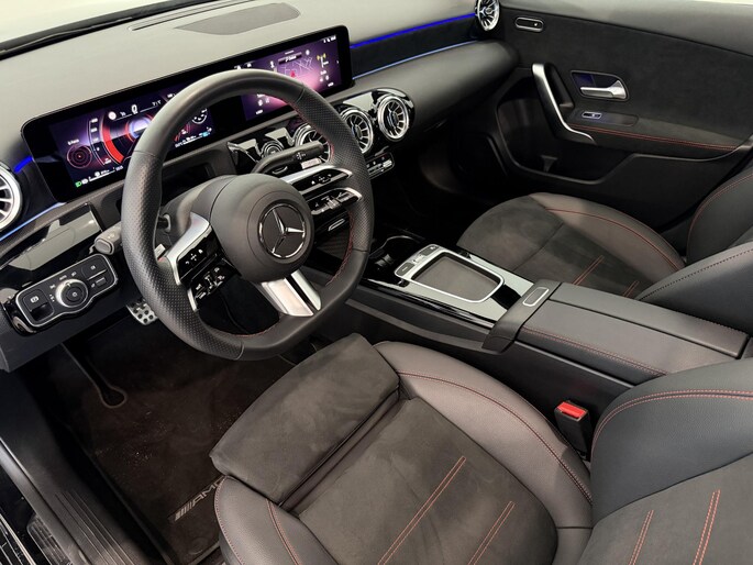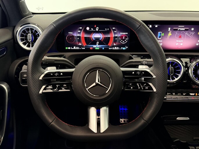 Een toonbeeld van Duitse kwaliteit in techniek, comfort en rijprestaties. Dat is deze Mercedes-Benz A-klasse. Geniet van de sportieve uitstraling en de fraaie details die de AMG-styling deze auto geeft. Deze auto is bijna nieuw, ondanks dat hij uit 2023 komt; hij heeft slechts 26195 kilometer afgelegd. Deze hybride heeft dankzij de extra elektromotor een zeer laag brandstofverbruik. De verwarmbare voorstoelen benadrukken nog maar eens dat we hier te maken hebben met een regelrechte verwenauto voor bestuurder en bijrijder. Fun en functie wordt samengebracht in het elektrisch bedienbare glazen panoramadak. Een verwarmd stuurwiel overbodige luxe? Wacht maar tot het kouder wordt! Verblinding van tegenliggers is er niet meer bij, dankzij de koplampen met matrix LED-verlichting. En toch de kwaliteit van daglicht in het donker! Bij de uitrusting van deze Mercedes-Benz horen onder meer 18 inch lichtmetalen velgen, AMG-styling, donker getint glas achter, in delen neerklapbare achterbank, LED-achterlichten en verstelbare lendensteunen.