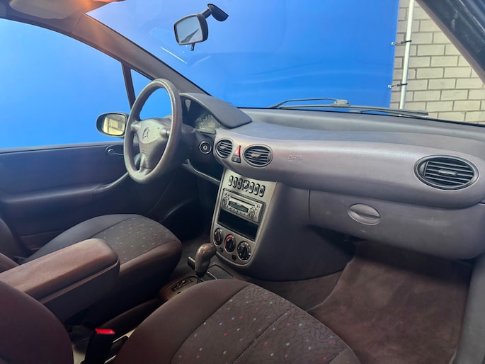 Mercedes-Benz A-klasse 160 Classic Automaat, bouwjaar 2001, kleur zwart ,centrale vergrendeling, dubbele airbag en zij airbag, elektrische ramen, in hoogte verstelbare stoelen voor, stuurbekrachtiging, radio/cd speler, perfecte banden, Automaat, heeft slechts 172.778 km gelopen,Apk tot 10-02-2027,zowel van binnen als buiten in zeer nette staat, voor verdere info 06-43677045 Gelieve telefonisch contact opnemen alvorens u langs komt. Wij zijn weleens onderweg om occasions op te halen, daardoor zijn wij binnen onze openingstijden niet altijd aanwezig. Op Maandag zijn wij geopend op afspraak en van Dinsdag t/m Vrijdag zijn wij geopend van 09:00 tot 17:00 en op zaterdag zijn wij geopend van 09:00 tot 15:00 uur. Inruil is zeker mogelijk bij ons, als u langs komt en u neemt de auto mee kunnen wij ter plaatse de auto taxeren en vrijwaren. U kunt ons altijd bereiken onder het numme