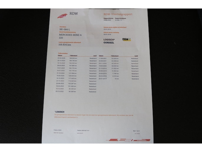 Kilometerstand gecontroleerd