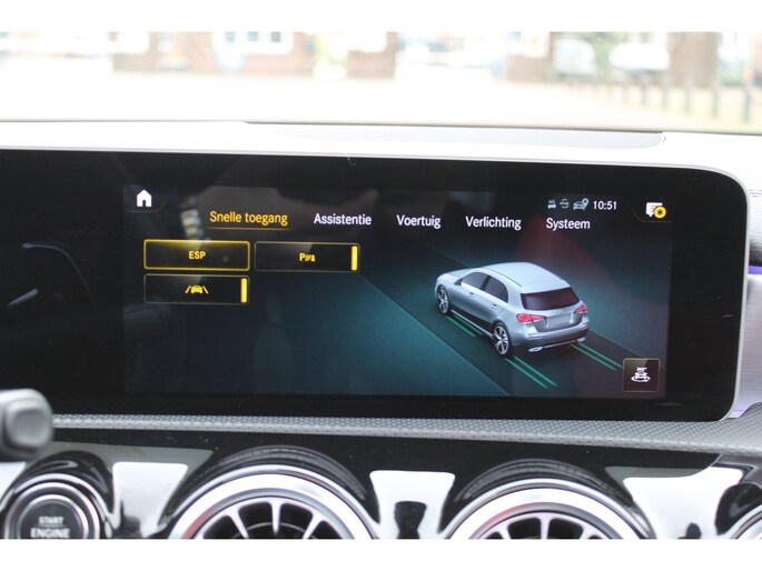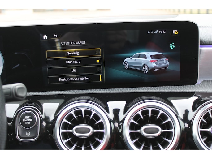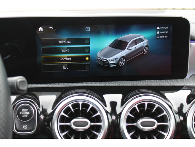 In de Mercedes-Benz A-klasse heeft uw veiligheid en die van uw omgeving prioriteit. In het instrumentarium ziet u tijdens de rit ook de belangrijkste verkeersborden aangegeven, die de auto automatisch voor u leest. Het Lane-keeping systeem registreert permanent of u binnen de lijnen van de rijstrook blijft; dwaalt u onbedoeld af, dan waarschuwt het systeem en corrigeert de koers. Het systeem van forward collision warning, of in gewoon Nederlands 'botswaarschuwing', treedt in werking als de sensor te weinig afstand signaleert met een voor- of tegenligger. Bovenop deze veiligheidsfeatures heeft deze Mercedes-Benz bovendien accident avoidance system, hill hold functie, Abs - anti blokkeer systeem met brake assistant, vermoeidheidsherkenning en bandenspanningcontrolesysteem.