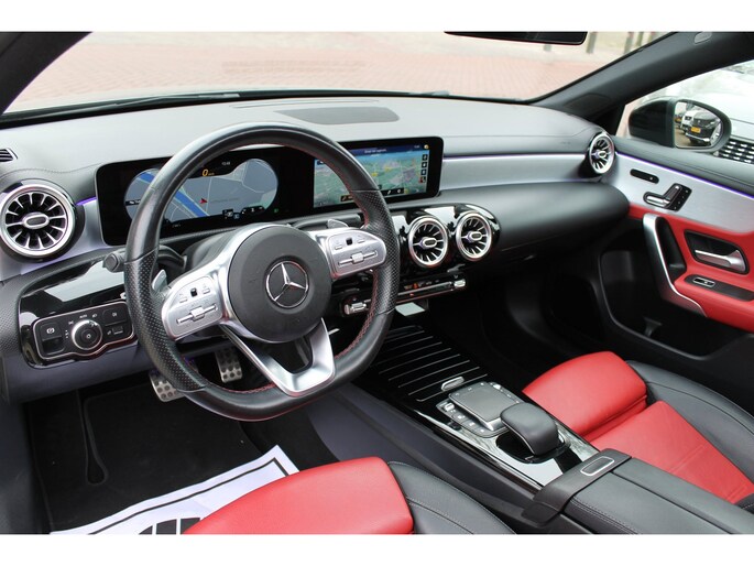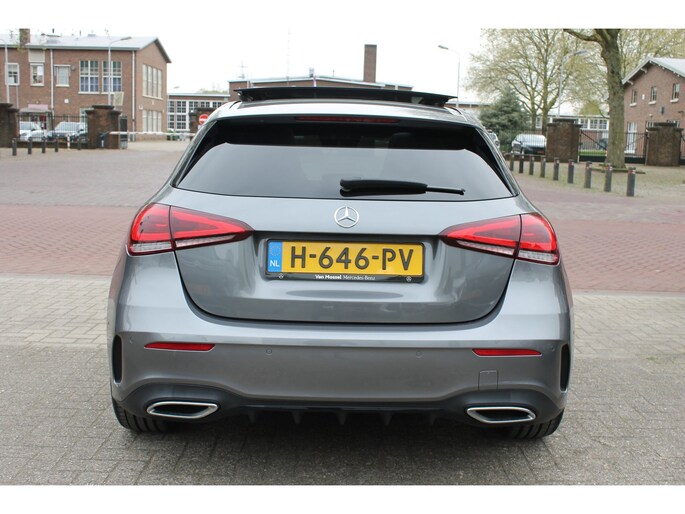 U ziet het al aan de buitenkant en u voelt het zodra u de krachtige motor start, deze sportieve Mercedes-Benz A-klasse is gemaakt om prestaties te leveren. De liefhebbers hebben het al gezien: de sportieve, stoere AMG-styling! De aandrijving van deze Mercedes-Benz wordt verzorgd door een viercilinder motor en een automatische transmissie. Fijn hoor, zo'n elektrisch bediend glazen panorama dak. Voeg daaraan toe: het lederen interieur en u ziet hier een heel mooi uitgevoerde auto. Zit u goed? De stoelen zijn eenvoudig instelbaar dankzij de elektrische bediening met geheugen. De matrix LED-verlichting in de koplampen bestaat uit een raster van lichtpunten met maximale opbrengst. Bij tegenliggers past het systeem precies die punten aan die hinderlijk kunnen zijn. U behoudt maximaal zicht! Tot de uitrusting van deze Mercedes-Benz behoren ook 19 inch lichtmetalen velgen, AMG-styling, warmtewerend glas, in delen neerklapbare achterbank, LED-achterlichten en verstelbare lendensteunen.