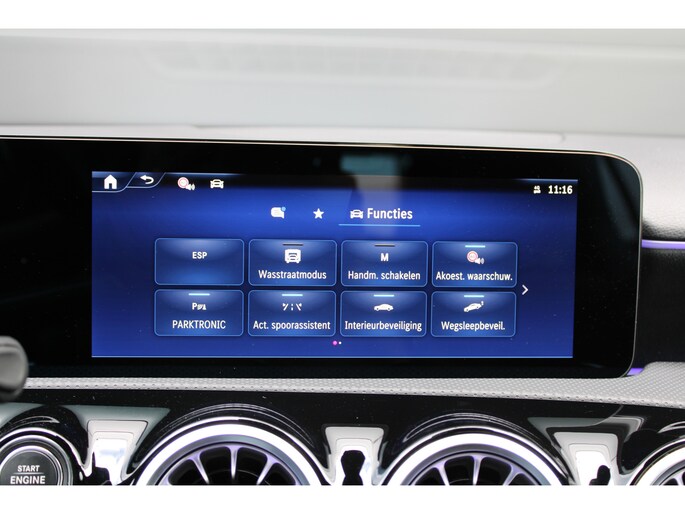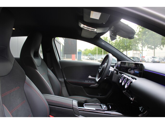 Deze Mercedes-Benz is voorzien van verschillende intelligente veiligheidsvoorzieningen. Ze kijken tijdens het rijden als het ware met u mee, ze signaleren potentieel gevaarlijke situaties en in een aantal gevallen kunnen ze ook ingrijpen. In het instrumentarium ziet u tijdens de rit ook de belangrijkste verkeersborden aangegeven, die de auto automatisch voor u leest. Deze Mercedes-Benz A-klasse is ook behulpzaam als het gaat om een rechte koers. Het Lane-keeping systeem signaleert en corrigeert als u onbedoeld de rijstrooklijnen dreigt te overschrijden. Botsingen met een voorligger gebeuren relatief vaak. De forward collision warning slaat tijdig alarm als dat risico ontstaat, zodat u kunt ingrijpen. De veiligheid van deze auto wordt verder verhoogd door vermoeidheidsherkenning, autonoom remsysteem en bandenspanningcontrolesysteem.