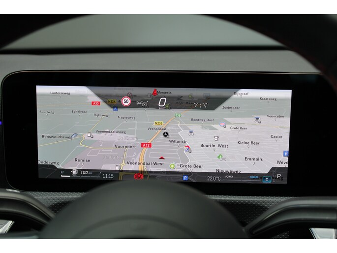 Deze auto is voorzien van een digitaal dashboard waarmee u de cockpit-interface kunt personaliseren. Twijfelen hoeveel ruimte u achter de auto heeft? Met de achteruitrijcamera weet u altijd hoeveel centimeter! Adaptive cruise control is een comfortabele en veilige optie. Het systeem reguleert de snelheid en houdt automatisch afstand tot uw voorligger. Een smartphone met internetverbinding legt eenvoudig overal contact met de auto. U kunt functies activeren en de conditie van de auto monitoren. Terwijl het navigatiesysteem met harde schijf de ideale route voor u uitstippelt, geniet u van de kwaliteit van het audio-installatiesysteem met DAB-ontvangst. De bediening is bovendien gemakkelijk via knoppen op het stuur of via spraak. De uitrusting van deze Mercedes-Benz is met WIFI-hotspot, electronic climate control, sportstuur met schakelpaddels, draadloos opladen, regensensor en automatisch dimmende buitenspiegels behoorlijk compleet.