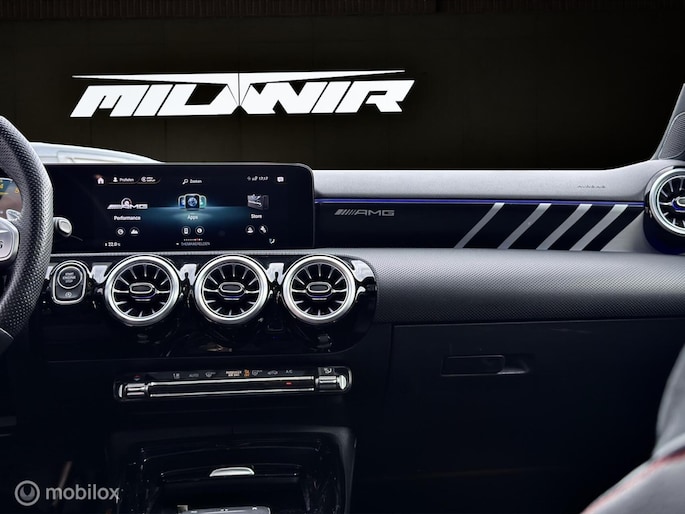 Prachtige Mercedes-AMG A35 4MATIC met 306 pk, volledig geregistreerde onderhoudshistorie in het Mercedes-Benz systeem. De auto is rijk uitgerust met o.a. panoramadak, AMG Aerodynamics Package, AMG Drive Unit draaiknoppen op het AMG-stuurwiel, sfeerverlichting, rode gordels en meer.