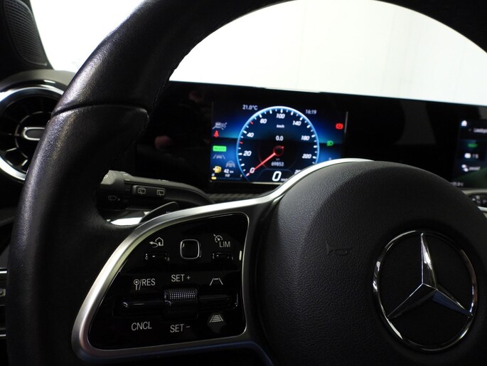 Zoals u mag verwachten van deze Mercedes-Benz A-Klasse is hij uitgerust met een reeks aan actieve veiligheidssystemen. In het instrumentarium kunt u bovendien de verkeersborden zien die u onderweg tegenkomt. Zo helpt deze Mercedes-Benz u om veiliger te rijden. Mooi binnen de lijnen van de rijstrook blijven? Het Lane-keeping systeem helpt altijd een handje. Hoe goed u ook oplet in het verkeer, de dode hoek blijft een risico. Gelukkig is deze Mercedes-Benz A-Klasse voorzien van actieve dodehoekdetectie. In deze Mercedes-Benz vinden we verder een forward collision warning system, brake assist en bandenspanningcontrolesysteem.