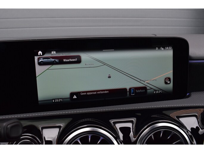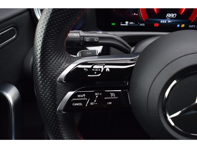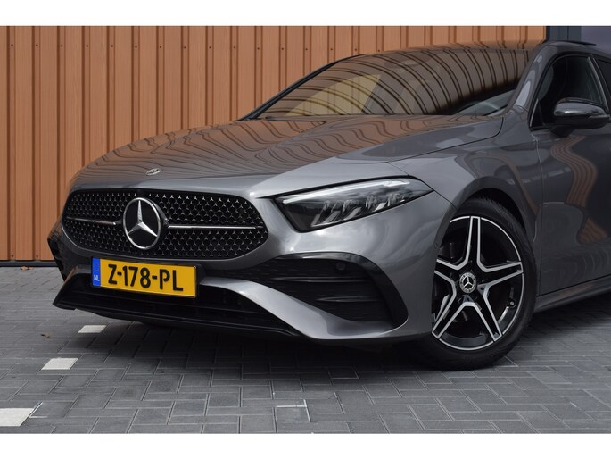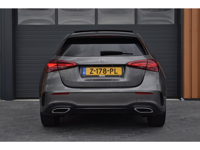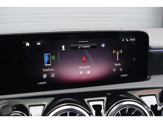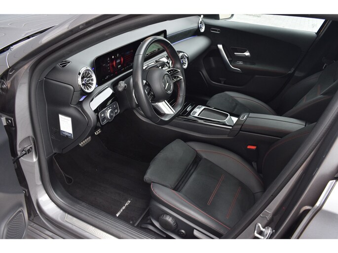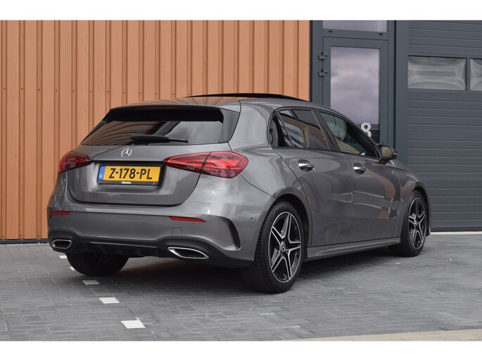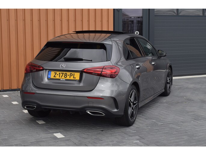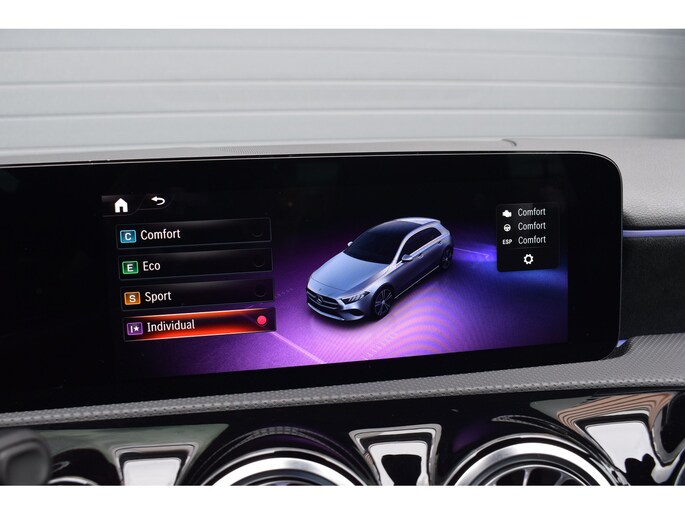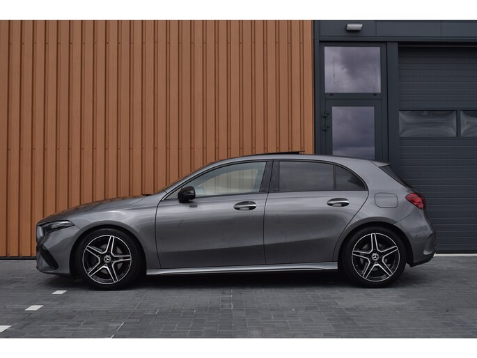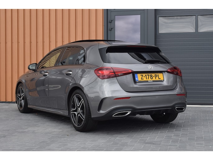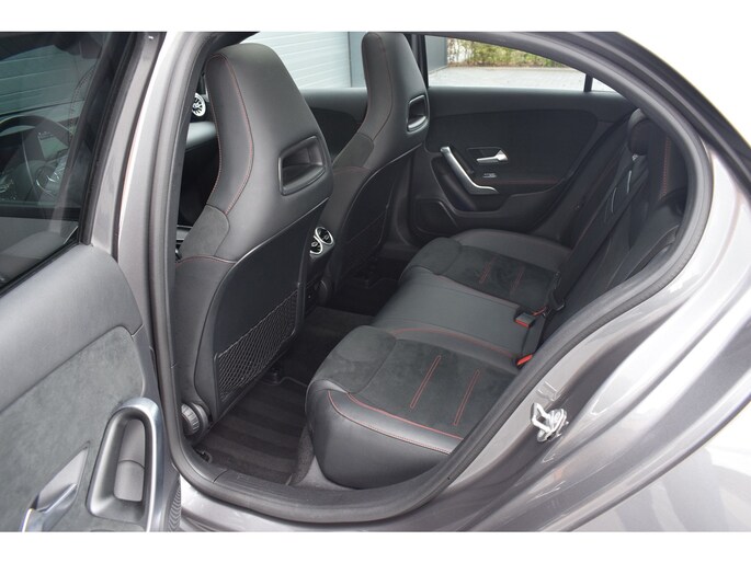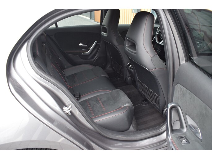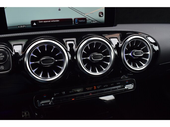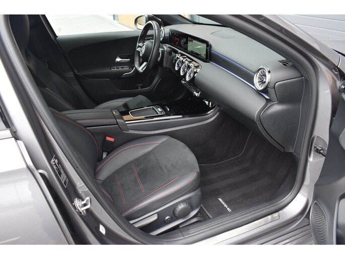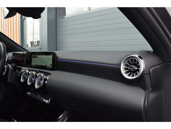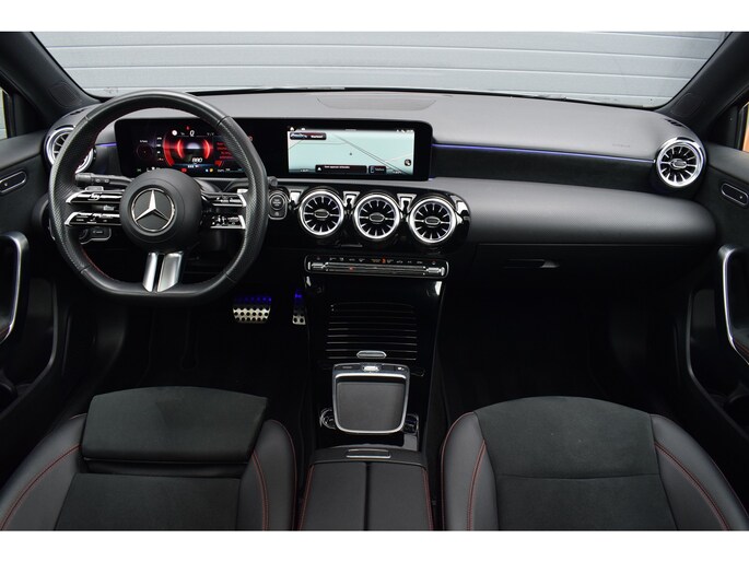 Mercedes-Benz A-klasse 200 164pk AMG Line. Uitgevoerd met o.a.: AMG styling (frontspoiler en dorpelverbreders), Panoramadak, Navigatiesysteem, Sfeerverlichting, Half lederen / alcantara interieur met sportstoelen voor, Stoelverwarming, Lendesteunverstelling, Lederen sportstuur, Interieur afgewerkt met rode stiksels, Climate control, Cruise control, Smartphone integratie Apple Carplay / Android auto, Draadloze telefoonlader, Achteruitrijcamera, Parkeersensoren voor en achter, Licht en Regensensor, Buitenspiegels elektrisch inklapbaar, LED koplampen en achterlichten.