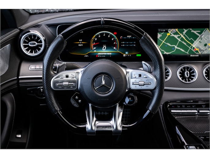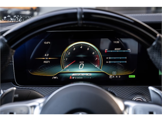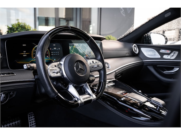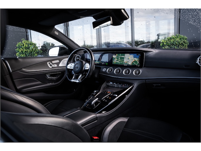 De Mercedes-Benz AMG GT 4-Door Coupe combineert comfort met een uitstekende wegligging en dynamische rijkwaliteiten. Het gaat hier om een auto uit 2020 die 95371 kilometer op de teller heeft staan. Lekker sportief en een tikkie stoer: de AMG-styling geeft een hele dynamische uitstraling. Een zescilinder benzinemotor en een automatische transmissie zorgen samen voor een snelle en comfortabele rijervaring. En o ja, het lederen interieur is ook een vermelding waard! Lekker hoor, die verwarmbare voorstoelen. Helemaal op koude dagen. Bovendien krijgen uw rug en die van uw bijrijder desgewenst extra aandacht door de massagefunctie. Dankzij de elektrische stoelbediening is het gemakkelijk om de optimale zitpositie te vinden. Het interieur baadt in een zee van licht met het elektrische bediende glazen panoramadak. De elektrisch bedienbare achterklep opent met een druk op de knop. De verwarmde achterbank is een luxe extra, speciaal voor de passagiers. Bij de rijke uitrusting horen ook 21 inch lichtmetalen velgen, AMG-styling, LED matrix verlichting, adaptief dempingsysteem, elektrisch inklapbare buitenspiegels en donker getint glas achter.