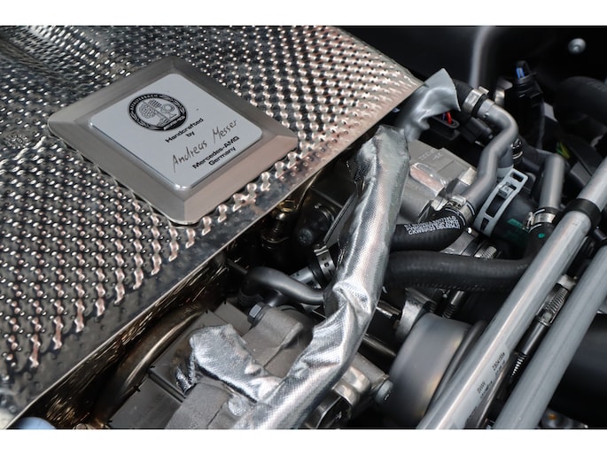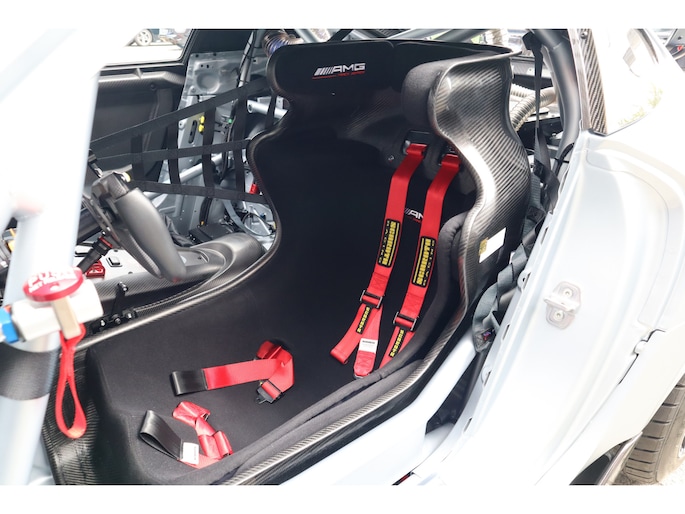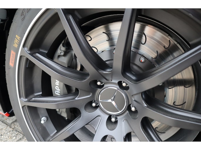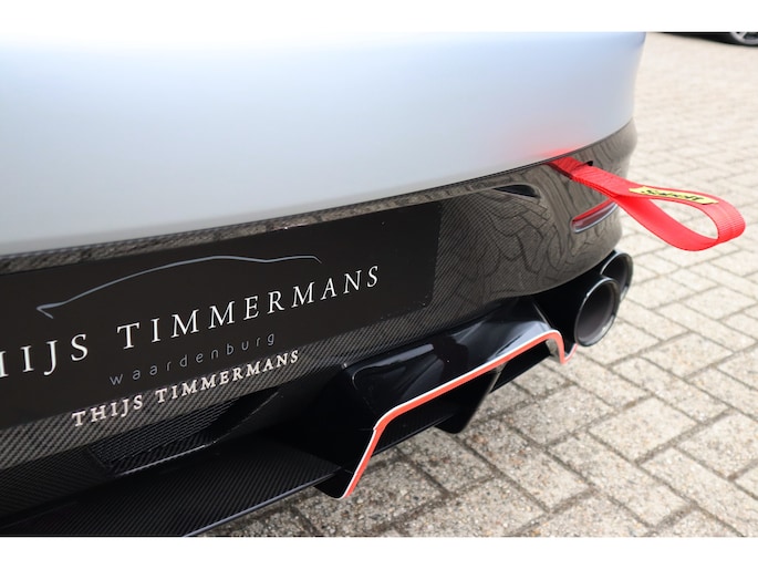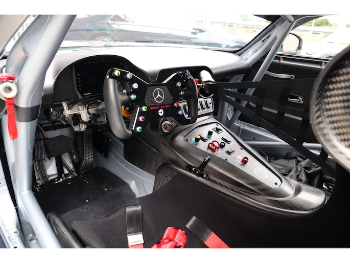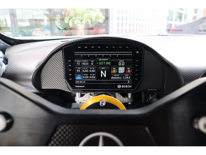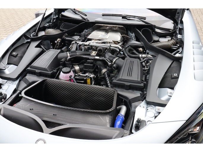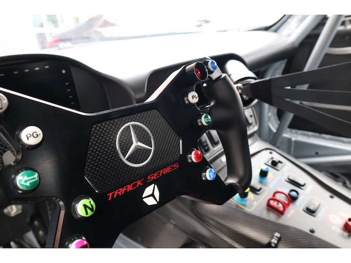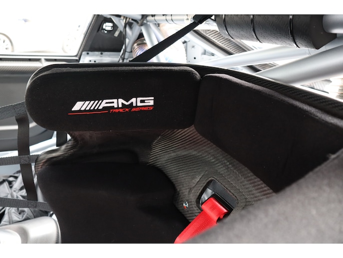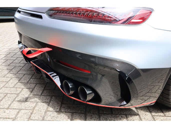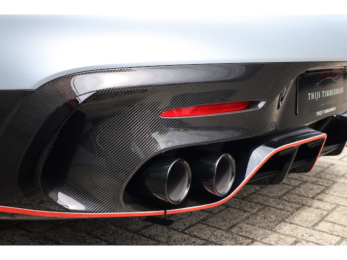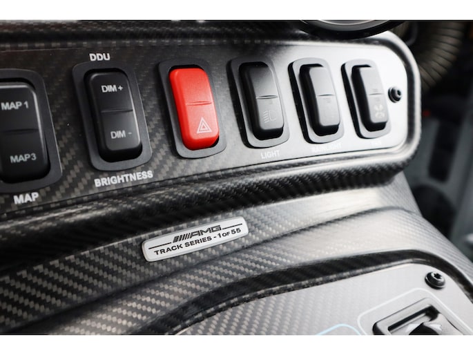 Diverse speciale aanpassingen maken de Track Series ronduit uniek. Zo kun je zowel de mate waarmee zowel het ABS als de traction control ingrijpen, zelf aanpassen. Je bedient dit allemaal via draaiknoppen op een uit koolstofvezel opgetrokken paneel, terwijl je goed vastgegespt zit in kuipstoelen die rechtstreeks uit de racerij lijken te komen. Ook heb je uiteraard geen conventioneel stuurwiel in handen, maar een speciaal voor de Track Series ontwikkeld exemplaar. Als dat samen met het puur functionele dashboard je er nog niet aan herinnert dat je iets speciaals in handen hebt, dan zorgen de diverse Track Series-logo's daar wel voor! Uiteraard is de AMG GT Track Series ook voorzien van zaken die de FIA voorschrijft voor de GT-raceklassen. Zo heeft hij een vijfpunts harnas om jezelf mee in de kuipstoel vast te snoeren, een rolkooi, er zit een brandblusser in en er zijn netten aanwezig die je in de auto houden als het helemaal fout gaat. De kans dat je dat nodig hebt, wordt zoveel mogelijk verminderd door speciale voor de racerij ontwikkelde stalen remmen, waarvan de balans ook vanuit de auto kan worden aangepast. De schijven gaan verscholen achter speciaal voor de auto ontwikkelde 18-inch wielen. Zoals gezegd heeft Mercedes-AMG slechts 55 exemplaren van de Track Series gebouwd. Dat maakt de beschikbaarheid van dit exemplaar bij Thijs Timmermans ronduit bijzonder. Voor meer informatie of het reserveren van een proefrit kunt u contact opnemen met Dempsy Plomp 06-48169561, d.plomp@thijstimmermans.com of Damian Elens, 06 39026637, d.elens@thijstimmermans.com