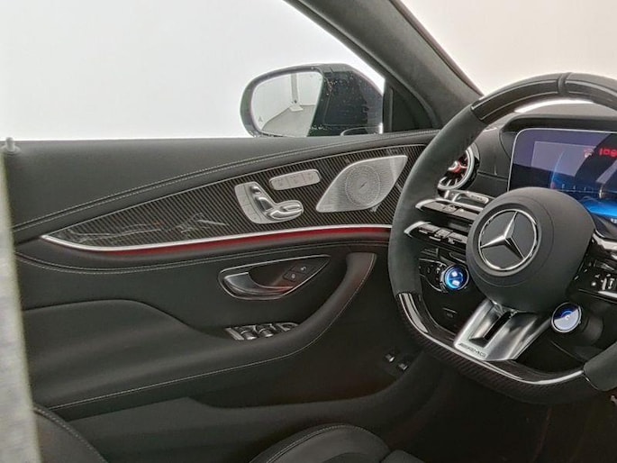 De indrukwekkende vormen en de topprestaties van deze Mercedes-Benz AMG GT 4-Door Coupe staan garant voor ultiem rijplezier. AMG Line Exterieur geeft deze auto een extra dynamische uitstraling. De uitstekende prestaties van deze auto komen van de achtcilinder motor en de automatische transmissie. Onder alle weersomstandigheden ligt deze auto als een blok op de weg dankzij de vierwielaandrijving. Kijk, dat noemen we nou stijlvol: een fraai lederen interieur. Gecombineerd met het heerlijke gemak van de elektrisch bedienbare achterklep. Ondanks koele temperaturen buiten, blijft u binnen warm met de stoelverwarming met massagefunctie en verwarmbare stuur en achterbank. Zit u goed? De stoelen zijn eenvoudig instelbaar dankzij de elektrische bediening met geheugen. Niet alleen u zelf geniet van de luchtvering; ook uw banden en remmen hebben veel minder te verduren. En de ergonomische comfortstoelen zorgen voor volmaakte ontspanning. Dankzij de elektrische bediening volstaat een druk op de knop als u open of dicht wilt rijden. Ook schuif- en kanteldak, 21 inch lichtmetalen velgen, LED koplampen, AMG Line Exterieur, warmtewerend glas en zwarte hemelbekleding horen tot de voorzieningen op deze auto.