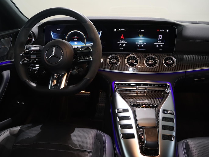 Ga je voor topklasse, dan is Mercedes de voor de hand liggende keus. 'The best or nothing', is het motto. Hoewel de auto uit 2022 komt, heeft hij maar 18158 kilometer gereden. De hybride combi van een verbrandingsmotor en een elektromotor zorgt voor zeer laag brandstofverbruik en veel minder uitstoot. Uitstekend wegcontact, extreem lage windgevoeligheid: de luchtvering zorgt ervoor! Deze Mercedes-Benz AMG GT 4-Door Coupe is luxe afgewerkt. Kijk maar naar het lederen interieur! Bestuurder en bijrijder krijgen een warm welkom: de verwarmbare voorstoelen zijn bovendien voorzien van massagefunctie. U past de stoelen moeiteloos aan, ze zijn elektrisch in te stellen en hebben bovendien een geheugen. Met een druk op de knop gaat de elektrische achterklep open. Het glazen panoramadak laat meer licht binnen in het interieur en zorgt voor een magnifiek uitzicht naar buiten. In deze auto profiteert u onder andere ook van: 20 inch lichtmetalen velgen, LED matrix verlichting, adaptief dempingsysteem, warmtewerend glas, LED-achterlichten en sportuitlaat.