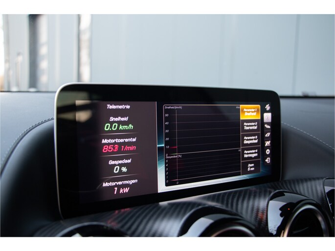 Op technologisch vlak is deze Mercedes-AMG GT R Pro voorzien van een uitgebreid infotainment- en connectiviteitspakket. Het COMAND Online audio-navigatiesysteem, in combinatie met Live Traffic, DAB-radio en smartphone-integratie, biedt alle moderne gemakken. Voor de echte liefhebber is AMG Track Pace geïntegreerd, waarmee rondetijden, telemetrie en rijgegevens realtime kunnen worden geanalyseerd — een onmisbare tool voor circuitgebruik. Het indrukwekkende Burmester High-End surround sound systeem zorgt daarbij voor een ongeëvenaarde geluidsbeleving wanneer prestaties plaatsmaken voor comfort.