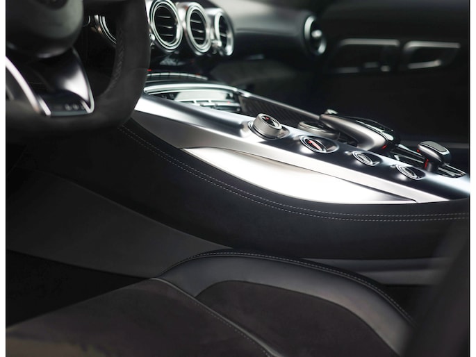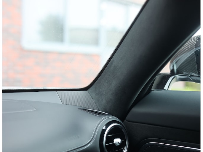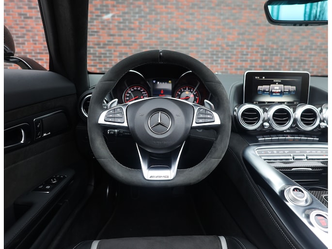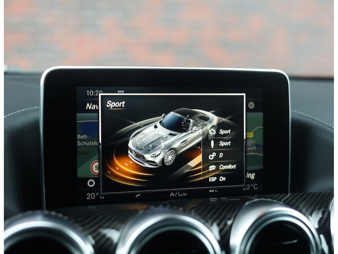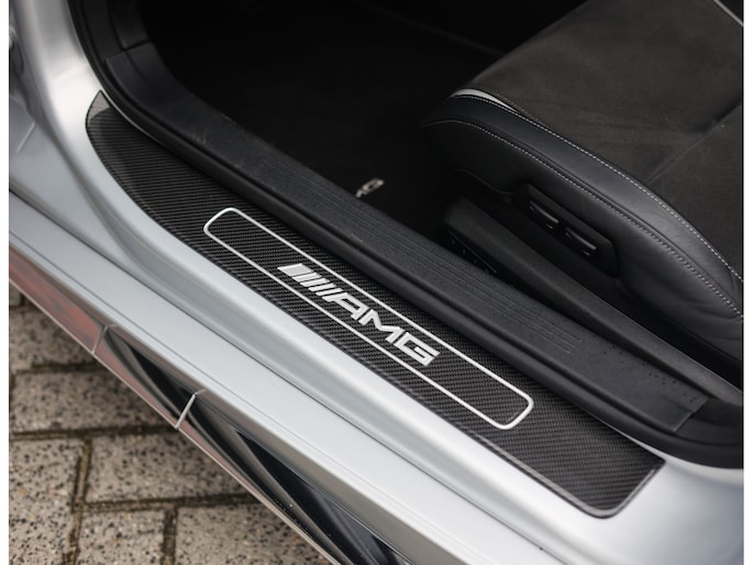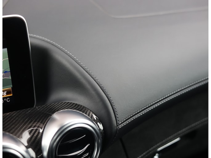 Het exterieur is uitgevoerd in het bijzondere matte Iridium Zilver. Een kleur die perfect contrasteert met de 20 inch AMG velgen. Achter deze velgen schitteren de felrode remklauwen, die samen met de rode kap een zeer sportieve touch aan de auto geven. De carbon details zoals de instaplijsten, spiegels en de motorafdekking zorgen ervoor dat u al vóór het instappen het ultieme sport gevoel krijgt.