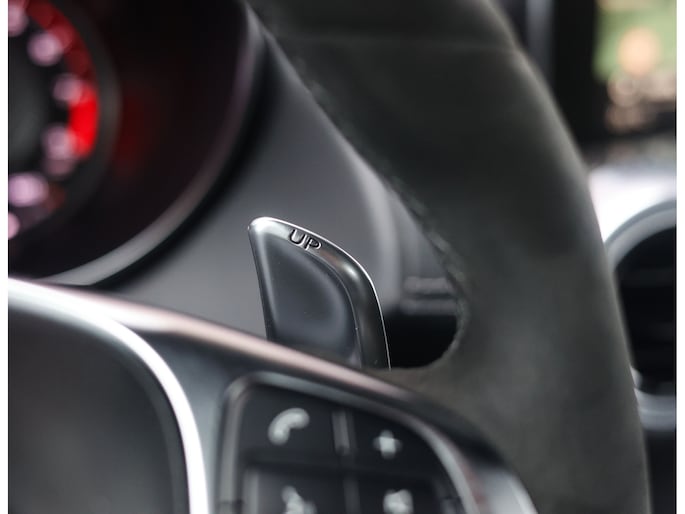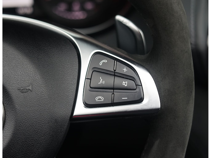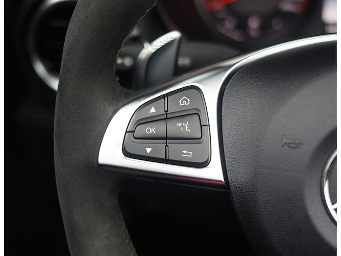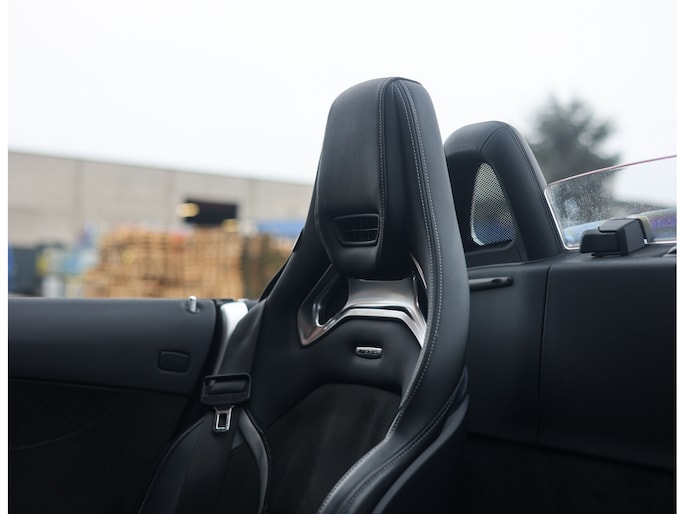 Het interieur tipt precies aan dit sportieve karakter, met de antracietkleurige half-leder/half-alcantara bekleding en de alcantara hemelbekleding. De AMG Performance stoelen met memory en stoelverwarming geven u precies de ondersteuning die u nodig hebt, evenals het met Alcantara afgewerkte AMG stuur. Het Burmester sound system, waarmee muziek echt tot leven komt, maakt de ervaring in deze cabrio helemaal af.