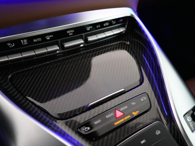 Het interieur is een oase van luxe: exclusief bruin leder, geventileerde en verwarmde dynamische stoelen met geheugen, het verwarmingspakket met verwarmde armsteunen, sfeervolle premium interieurverlichting en Crafted Clarity-glasafwerking. Het panoramadak, de premium audio-installatie en de 64-kleuren ambient verlichting maken het plaatje compleet.