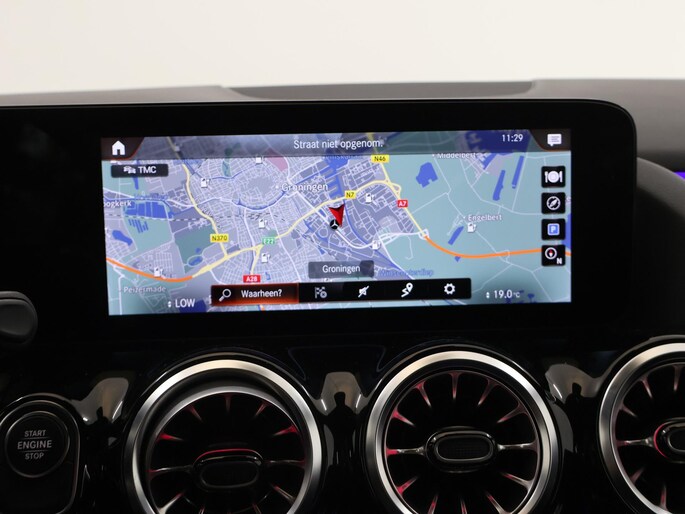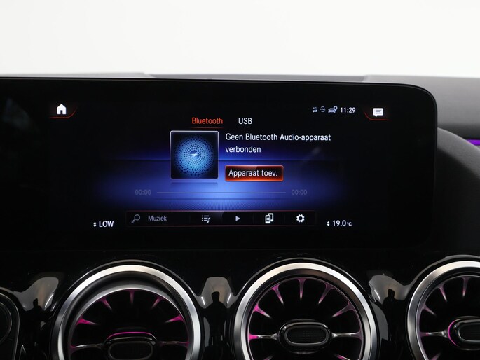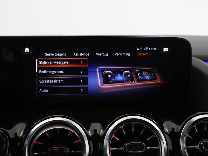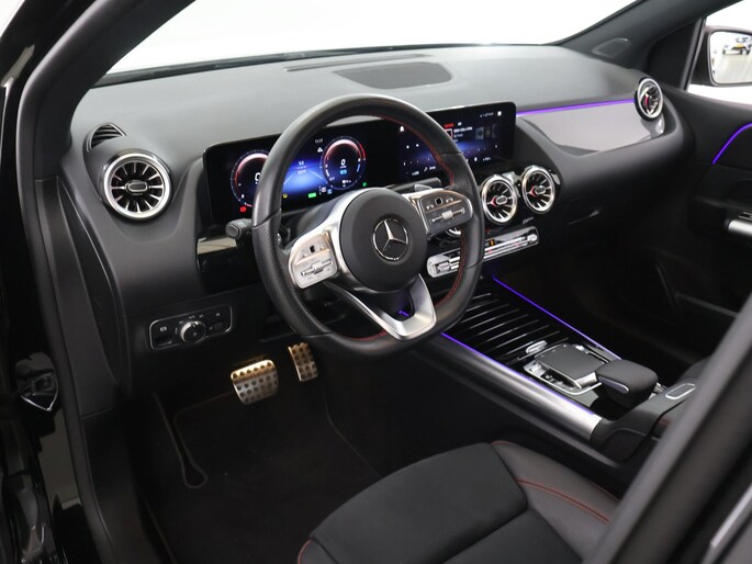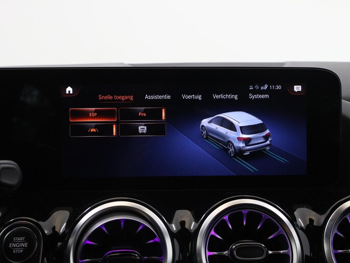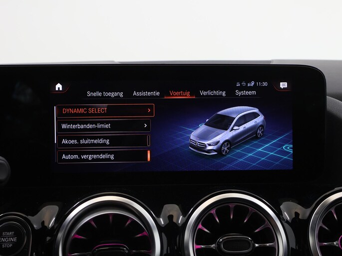 Voor het overzicht tijdens iedere rit is deze Mercedes-Benz B-klasse voorzien van een gemakkelijk afleesbaar digitaal dashboard. Met de 360 graden camera, verzorgd door vier camera's, wordt rijden in drukke steden of het navigeren in nauwe ruimtes een koud kunstje. Adaptive cruise control is een comfortabele en veilige optie. Het systeem reguleert de snelheid en houdt automatisch afstand tot uw voorligger. Met de ingebouwde spraakbediening kunt u de belangrijkste voertuigsystemen bedienen met stemcommando's. Uw smartphone wordt een dashboard, met alle functies in beeld. Dankzij Connected Services en de speciale app. Met navigatiesysteem met harde schijf, electronic climate control, sportstuur met schakelpaddels, draadloos opladen, DAB ontvangst en regensensor is deze auto helemaal compleet.