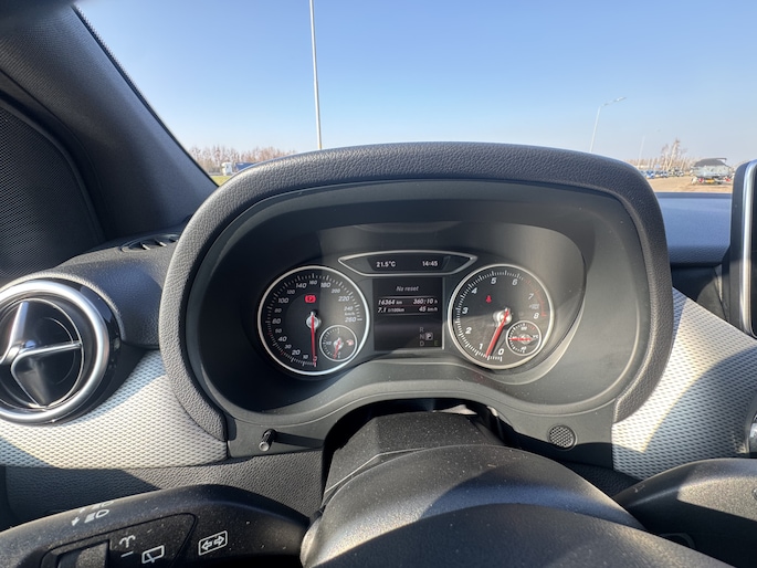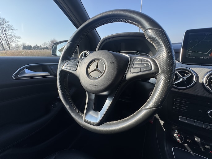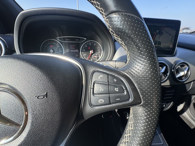 De bediening van het audiosysteem en het navigatiesysteem gebeurt met knoppen op het stuur. De achteropkomend verkeer waarschuwing is een mooie veiligheidsoptie, die middels sensoren in de gaten houdt wat er onderweg achter u gebeurt. Parkeerplekken worden er niet ruimer op. Maar met de aanwezige parkeersensoren krijgt u deze Mercedes-Benz B-klasse zonder problemen op z'n plaats. De cruise control geeft elke flitser het nakijken. Ja, airconditioning is er natuurlijk ook in deze auto. Met buitentemperatuurmeter, lederen stuur, centrale deurvergrendeling met afstandsbediening, bagage afdekhoes en boordcomputer is deze auto helemaal compleet.