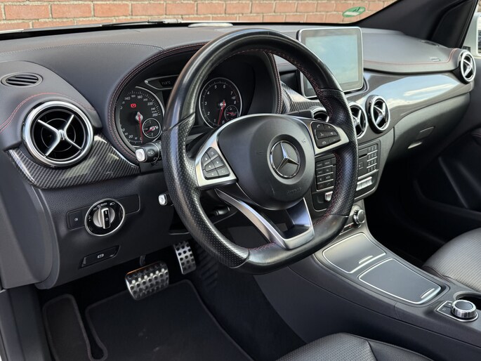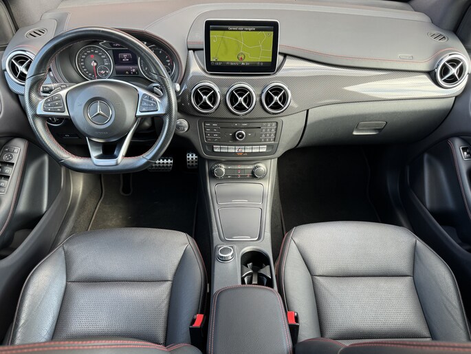 Gebouwd voor vele jaren rijplezier waarbij comfort en veiligheid op de eerste plaats staan, dat is deze typisch Duitse Mercedes-Benz B-klasse. Het is een auto uit 2015, er staat 83000 kilometer op de teller. Het sportieve uiterlijk is meegeleverd in de vorm van de AMG-styling. Deze goed onderhouden auto is van de eerste eigenaar. Met zijn benzinemotor en automatische transmissie is dit een prima auto voor nog vele kilometers. Deze auto is ook voorzien van stoelverwarming. Een heerlijk zonnetje, of indrukwekkende wolkenpartijen? Bekijk ze onbelemmerd door het elektrisch bediende glazen panoramadak. Dankzij de xenonverlichting profiteert u in het donker van een krachtige en heldere lichtbundel. In deze Mercedes-Benz profiteert u onder andere ook van: 18 inch lichtmetalen velgen, LED koplampen, AMG-styling, warmtewerend glas, zwarte hemelbekleding en in delen neerklapbare achterbank.