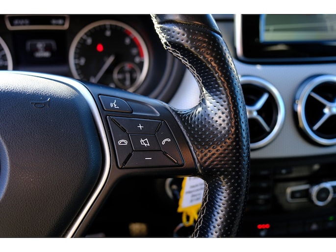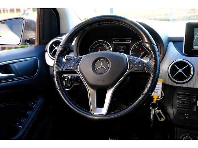 Deze Mercedes-Benz B-klasse is voorzien van een elektrisch inklapbare trekhaak voor als u met een caravan of aanhanger op pad wilt. U bedient het navigatiesysteem en het audio-installatiesysteem via knoppen op het stuur. Zo kunt u steeds uw aandacht gericht houden op de weg. Omdat u nu eenmaal niet overal ogen heeft, is deze Mercedes-Benz B-klasse voorzien van een achteropkomend verkeer waarschuwing die registreert wanneer de afstand tot uw achterligger te krap is. De parkeersensoren registreren alles. Ook dat ene paaltje dat net buiten uw gezichtsveld valt. Achter het stuur van deze Mercedes-Benz bent u niet alleen. De auto kijkt als het ware met u mee tijdens de rit. De regensensor schakelt de ruitenwissers in als het nodig is en de automatisch inschakelbare verlichting doet de lichten voor u aan. Deze Mercedes-Benz is voorzien van cruise control, sportstuurwiel, airconditioning, automatisch dimmende binnenspiegel, centrale deurvergrendeling met afstandsbediening en boordcomputer.