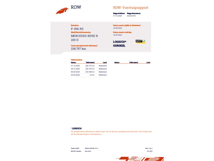 Kilometerstand gecontroleerd