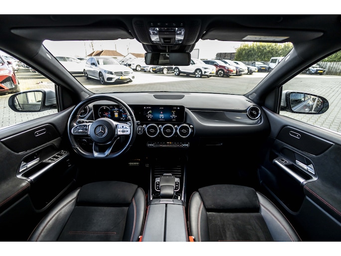 Zijn dynamische uiterlijk maakt al direct duidelijk wat voor rijervaring u van deze Mercedes-Benz B-klasse mag verwachten: pure sportiviteit. Het sportieve uiterlijk is meegeleverd in de vorm van de AMG-styling. De aandrijving van deze Mercedes-Benz wordt verzorgd door een viercilinder benzinemotor en een automatische transmissie. De verwarmbare voorstoelen benadrukken nog maar eens dat we hier te maken hebben met een regelrechte verwenauto voor bestuurder en bijrijder. De sportstoelen zien er niet alleen prachtig uit, maar zijn ook functioneel, zoals u kilometer na kilometer zult merken. Het interieur baadt in een zee van licht met het elektrische bediende glazen panoramadak. De elektrische achterklep opent met een druk op de knop, zodat u gemakkelijk toegang heeft tot de bagageruimte. In deze auto profiteert u onder andere ook van: 18 inch lichtmetalen velgen, Full LED koplampen, AMG-styling, zwarte hemelbekleding, donker getint glas achter en in delen neerklapbare achterbank.