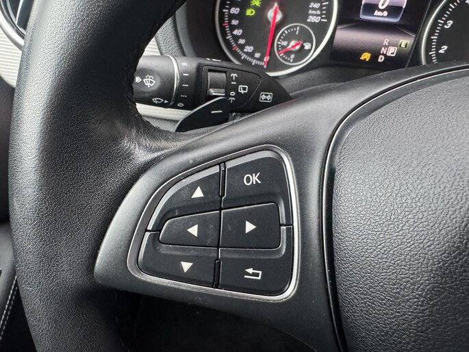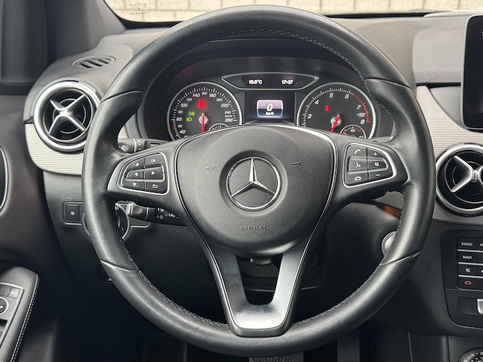 Geen nekkramp of spiegelwerk meer bij het achteruitrijden: de achteruitrijcamera kijkt en ziet alles! Oliepeil, bandenspanning, sloten en andere functies zijn via een speciale app overal te checken dankzij Connected Services. Met de knoppen op het stuur regelt u het audio-installatiesysteem en het full map navigatiesysteem, terwijl u uw blik op de weg gericht houdt. Deze Mercedes-Benz B-klasse is voorzien van sensoren aan de achterzijde om een achteropkomend verkeer waarschuwing te geven als de afstand tussen u en een achterligger te klein is. Het hoort bij een intelligente auto als deze dat hij zelf in staat is om zijn omgeving in de gaten te houden. Dat doet deze Mercedes-Benz met een automatisch inschakelbare verlichting en een regensensor. En deze auto heeft ook cruise control, airconditioning, buitentemperatuurmeter, lederen stuur, centrale deurvergrendeling met afstandsbediening en bagage afdekhoes als standaard uitrusting.