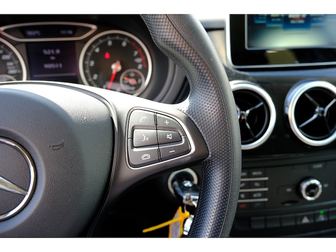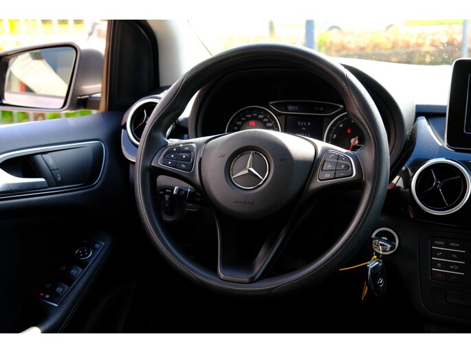 Tijdens de rit bedient u het audiosysteem met de knoppen op het stuur of met uw stem. Aan boord van deze Mercedes-Benz B-klasse is een achteropkomend verkeer waarschuwing voor extra veiligheid. Cruise control is aanwezig; prettig voor de lange einden. In deze auto kiest u zelf uw ideale temperatuur dankzij de airconditioning. Ook is de Mercedes-Benz uitgerust met: buitentemperatuurmeter, centrale deurvergrendeling met afstandsbediening, boordcomputer en verstelbaar stuur.