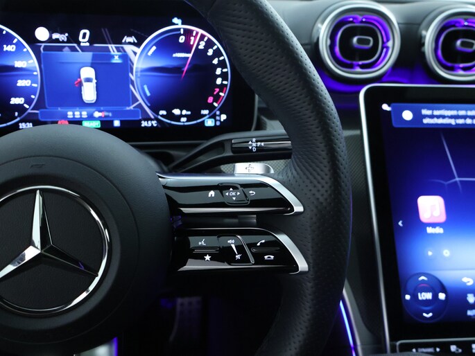 De Mercedes-Benz C-klasse Estate vertegenwoordigt het beste van degelijk Duits design. Dit exemplaar is van het bouwjaar 2025 en heeft 10626 kilometer op de teller staan. Een hoogtepunt uit de specificatielijst van deze auto is de sportieve AMG Line Exterieur. De hybride motor van deze Mercedes-Benz C-klasse Estate zorgt dat je opvallend veel minder brandstof verbruikt dankzij de ondersteuning van de elektromotor met z'n eigen accu. En die laad je al rijdend bij. Slim... en zuinig! Twaalf maanden per jaar een zomergevoel krijg je van het elektrisch bediende glazen panorama dak. En 24 uur per dag het gemak van de elektrisch bedienbare achterklep. Dankzij de elektrische stoelbediening is het gemakkelijk om de optimale zitpositie te vinden. Ook AMG Line Exterieur, dynamisch onderstel en neerklapbare achterbank zijn aan boord.