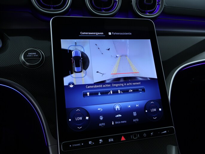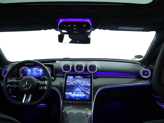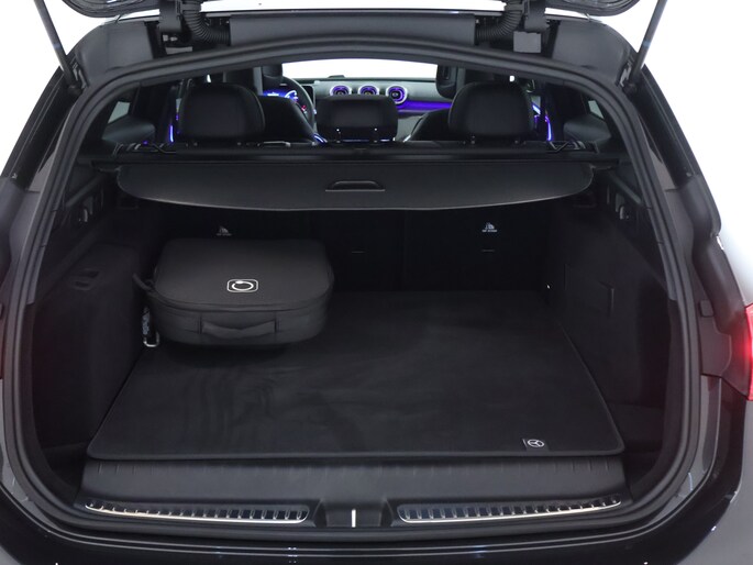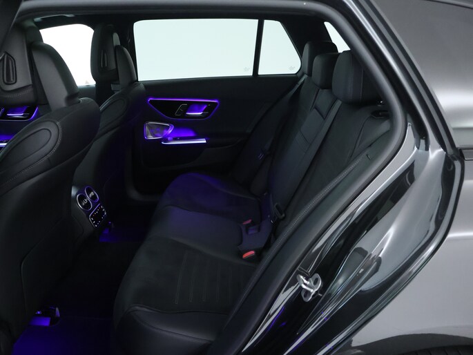 Elk van de vier camera's op deze auto draagt bij aan het creëren van een onbelemmerd uitzicht van 360 graden rondom de auto. Voorzien van een draadloze oplaadmogelijkheid voor telefoons om onderweg de accu van de smartphone bij te laden. Deze Mercedes-Benz C-klasse Estate maakt het rijden graag gemakkelijk. Daarom verzorgt de regensensor de mate van ruitreiniging die de ruitenwissers moeten leveren bij neerslag. De sensor van de keyless entry herkent je op korte afstand en ontgrendelt de portieren automatisch. Ook DAB ontvangst, isofix-aansluiting en bekerhouder horen tot de voorzieningen op deze auto.