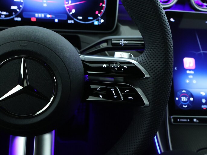 Ontspannen en zorgeloos autorijden, dat doe jij met deze Mercedes-Benz C-klasse Estate. De liefhebbers hebben het al gezien: de sportieve, stoere AMG Line Exterieur! De auto is van het bouwjaar 2025 en is van de eerste eigenaar. Met een viercilinder benzinemotor en een automatische transmissie beschikt deze Mercedes-Benz over uitstekende prestaties. Zit je goed? De stoelen zijn eenvoudig instelbaar dankzij de elektrische bediening met geheugen. De bagageruimte is toegankelijk via een comfortverhogende elektrische achterklep. Tot de uitrusting van deze Mercedes-Benz behoren ook 19 inch lichtmetalen velgen, high-performance LED-koplampen, AMG Line Exterieur, sportonderstel, warmtewerend glas en neerklapbare achterbank.