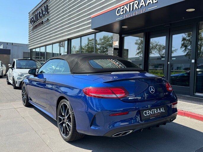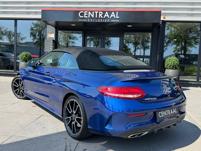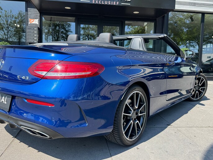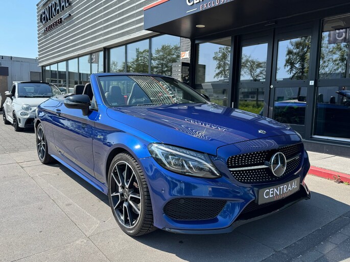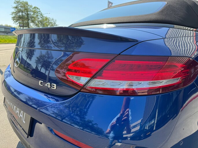 Met deze Mercedes-Benz C43 AMG Cabriolet, in de heerlijke kleur Briljant blauw metallic heb je bekijks. Kenners waarderen zijn lijn en zijn heerlijke klinkende V6-Bitubro. Ook deze 43-versie voldoet aan alles waardoor een AMG-model zich onderscheidt. Ja, ook zonder de beestachtige V8 (of zelfs V12) van de grotere AMG’s. Vooraan vinden we een door twee turbo’s aangeblazen drieliter V6 die goed is voor 367 pk en 520 Nm. Optrekken tot 100 km/u gebeurt in een razendsnelle 4,8 seconden, mede door zijn 4Matic 4 wielaadrijving en stoomt moeiteloos door tot 280 km/u.